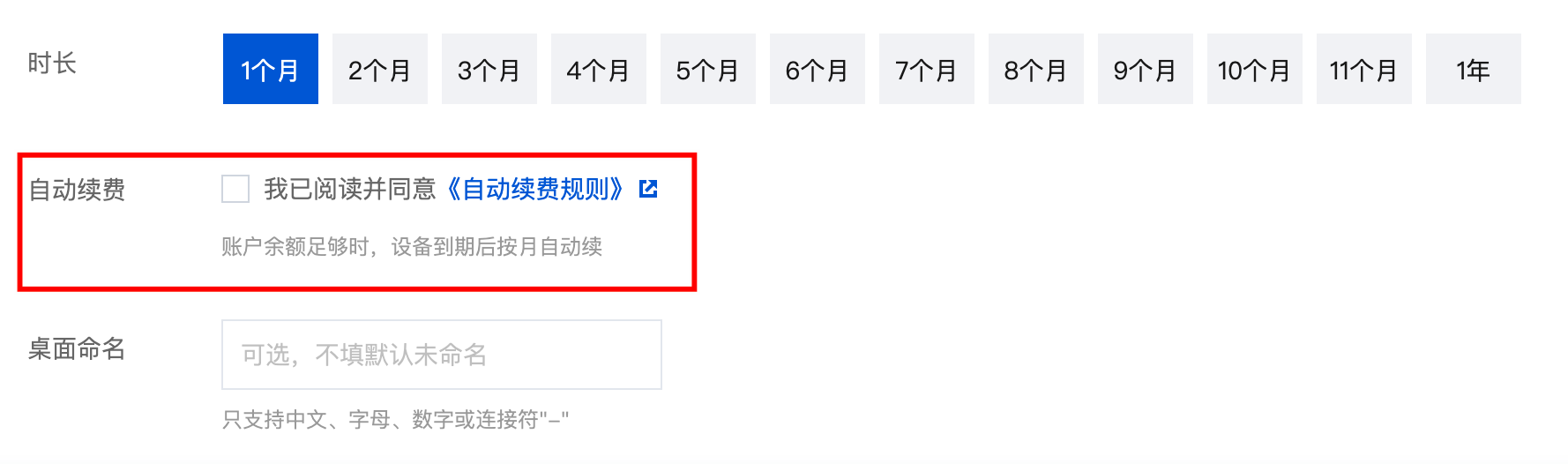 您可以在 云桌面购买页 选购时勾选开通自动续费服务。