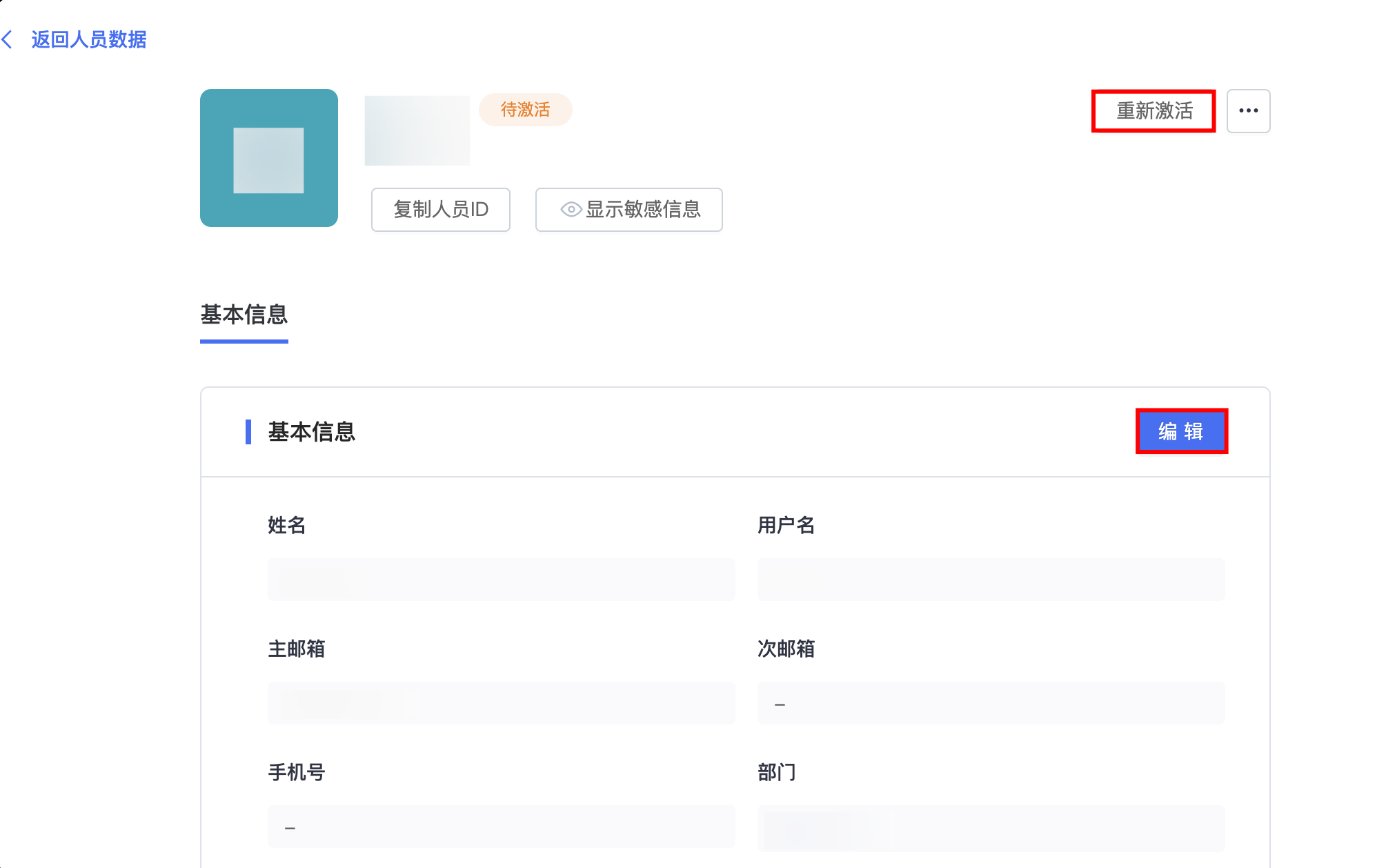 2.单击重新激活再次发送激活邮件,提示未激活用户进行激活。若用户仍未收到激活邮件,可以检查邮箱是否填写正确,如需修改可通过编辑更改邮箱地址。