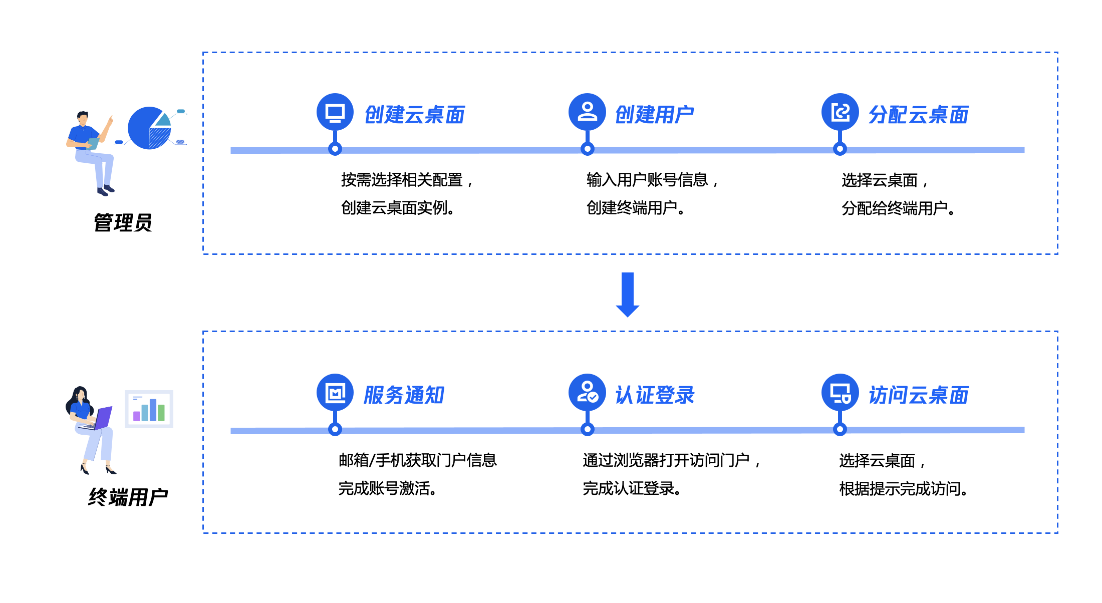 终端用户 | 云桌面资源的使用者,通过浏览器登录访问门户,获取云桌面资源并使用。 |