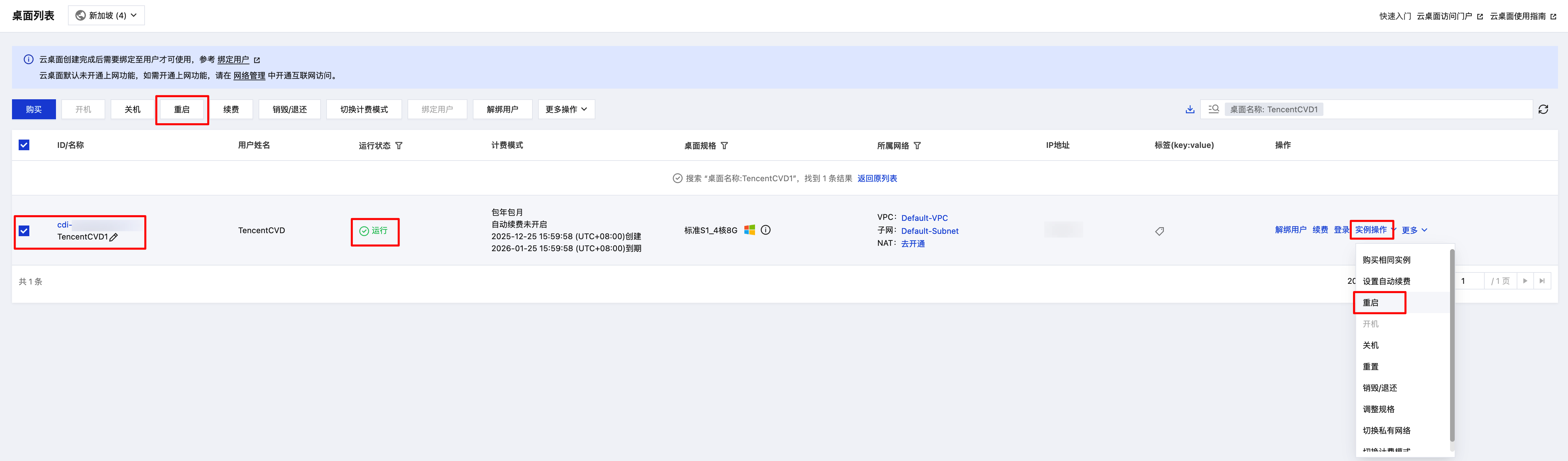 本文将介绍如何在云桌面控制台对云桌面执行重启操作。