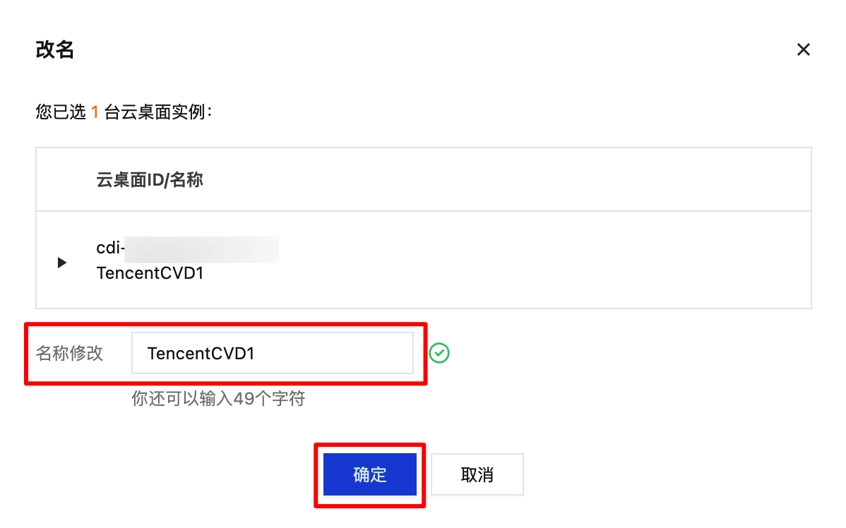 页面中,输入新的云桌面名称,单击