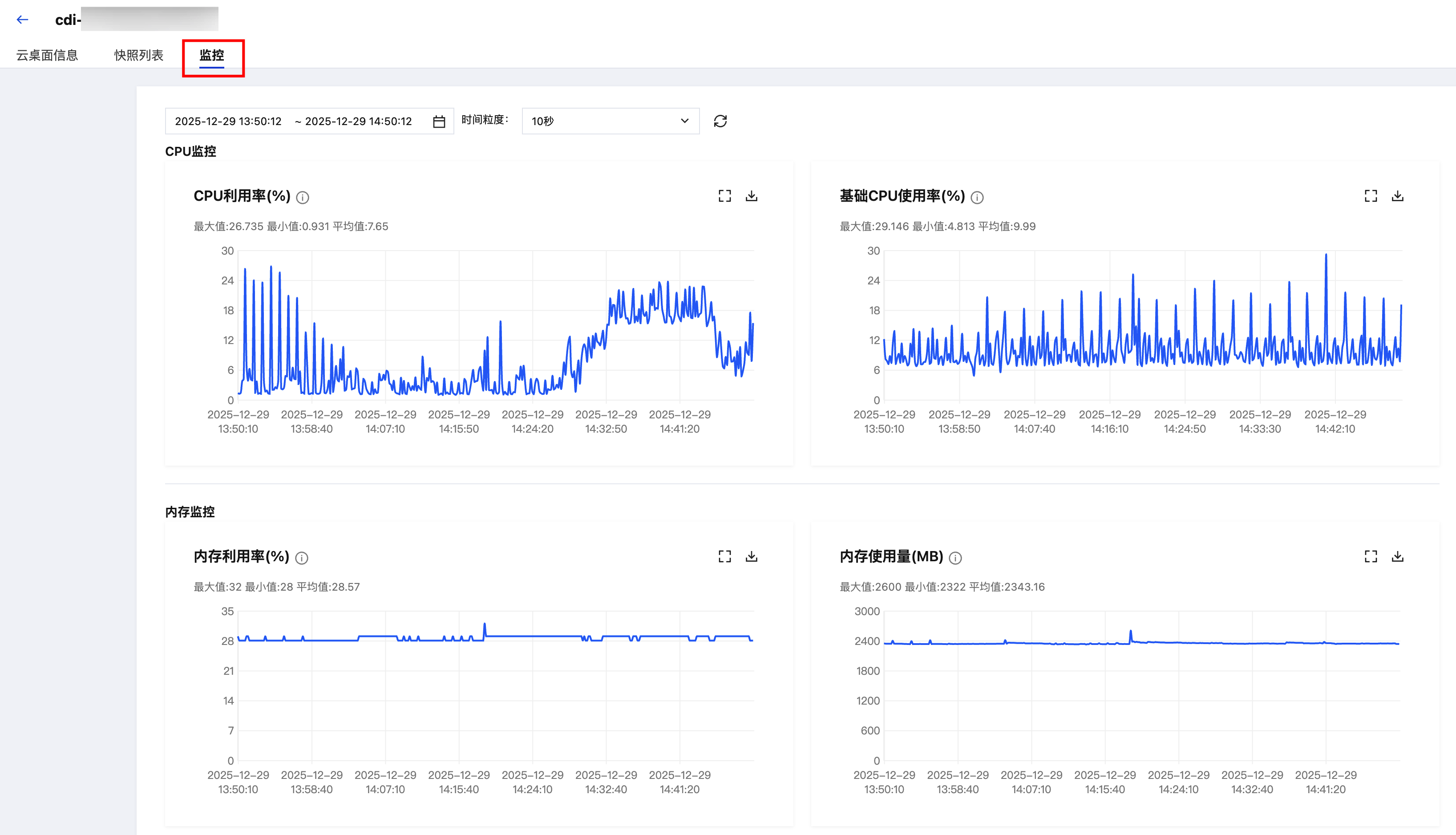 为了方便用户查看云桌面实例监控信息,腾讯云桌面支持在云桌面控制台的实例详情页中查看云桌面实例的监控信息。