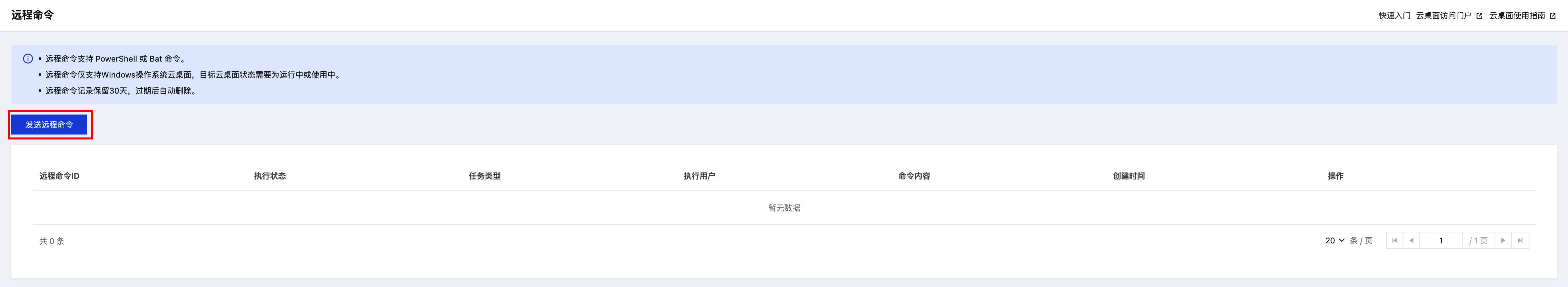 远程命令记录保留30天,过期后自动删除。