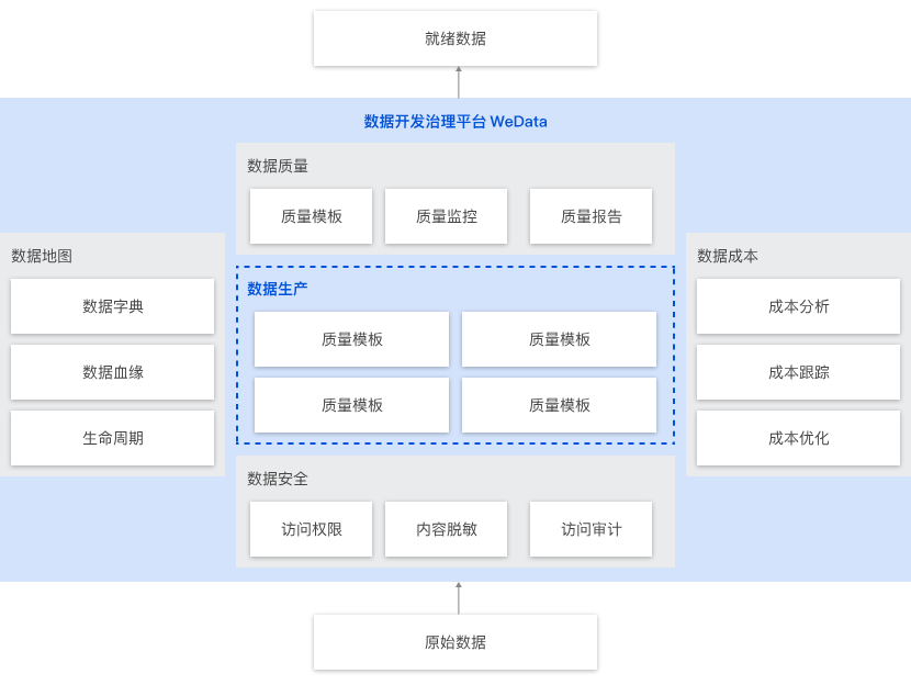 WeData 在核心数据处理能力的基础上,提供了一系列数据治理能力,帮助企业将数据的方方面面治理起来,使得数据能够被放心大胆地应用于业务,高效为业务创造价值