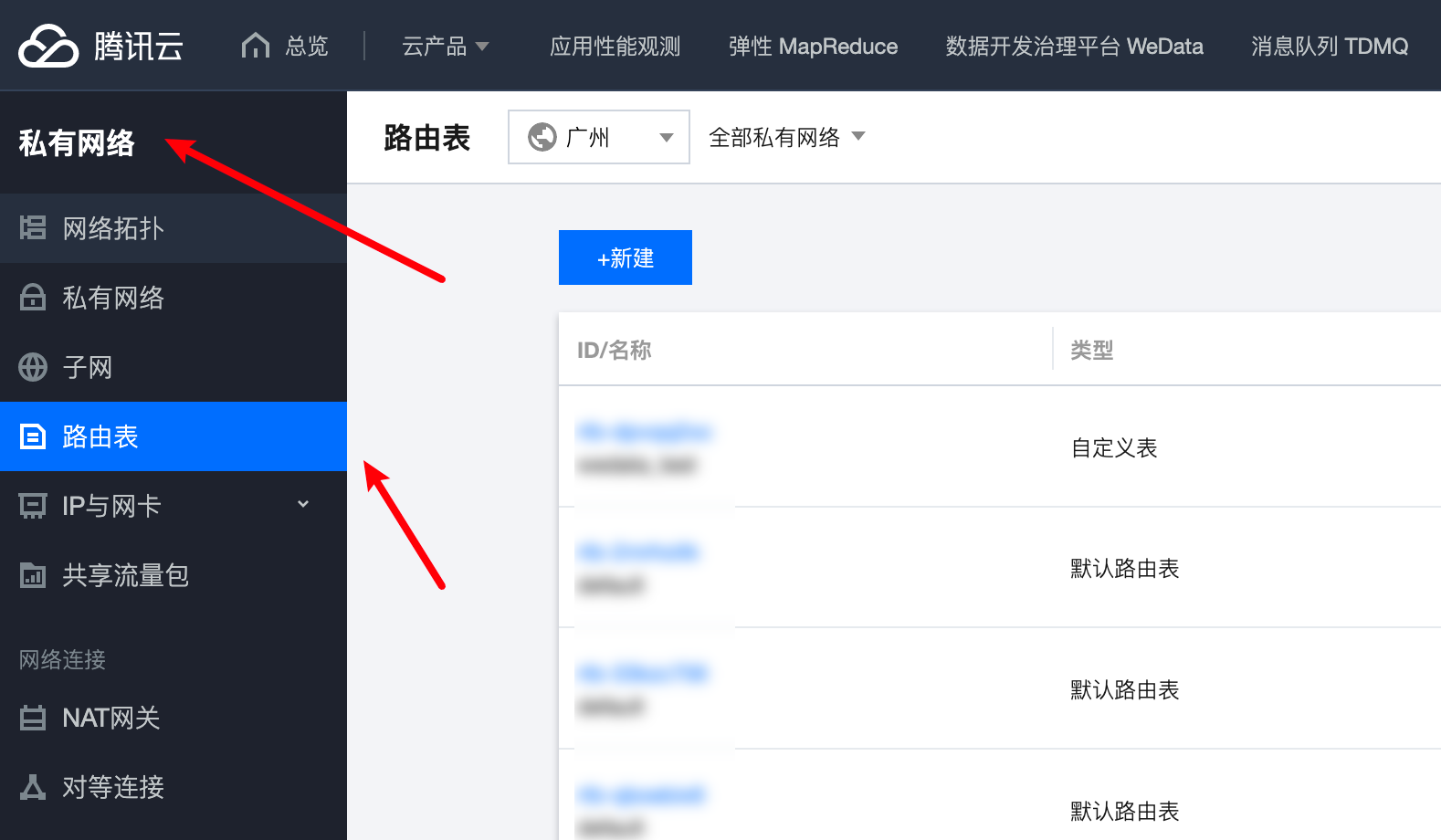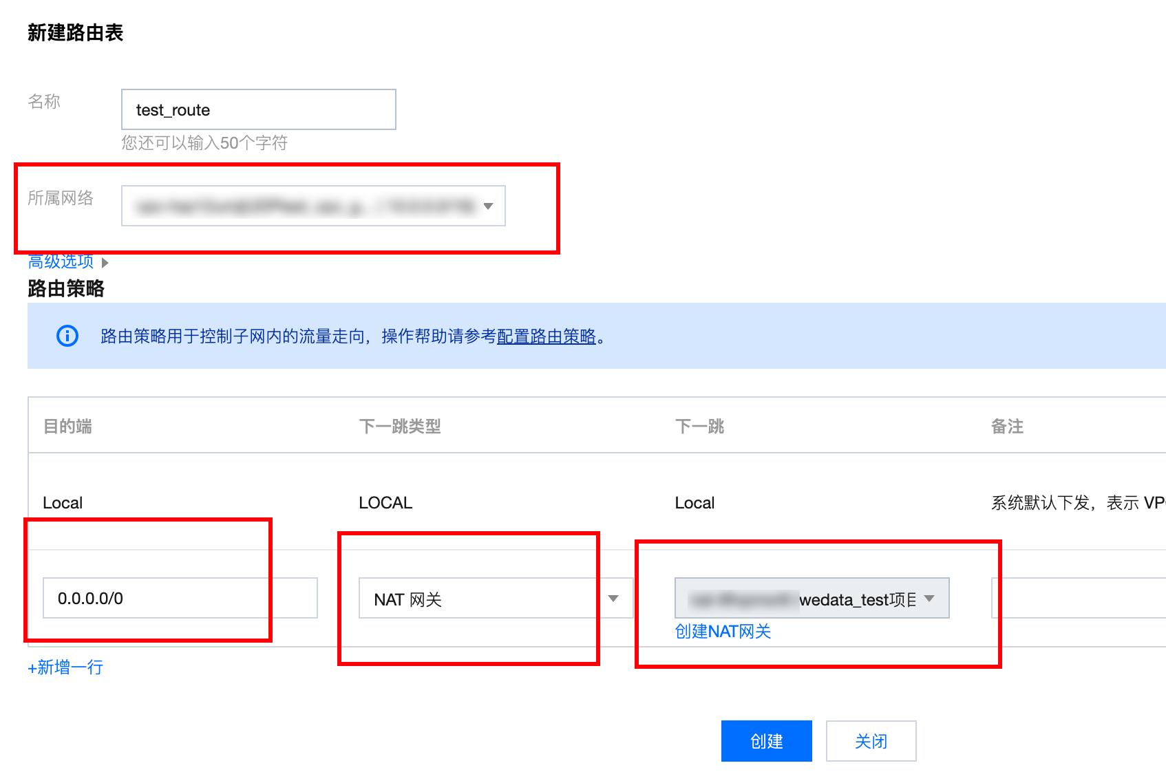 3. 进入腾讯云私有网络 > 路由表,创建并绑定路由表指向 NAT 网关。