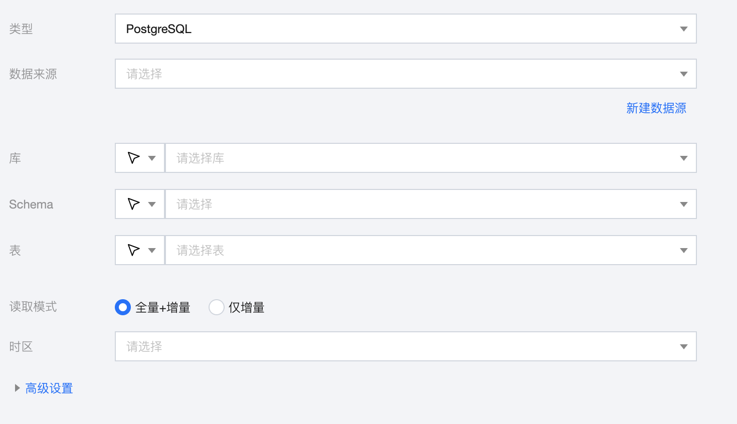 数据来源 | 选择需要同步的 PostgreSQL数据源。 |