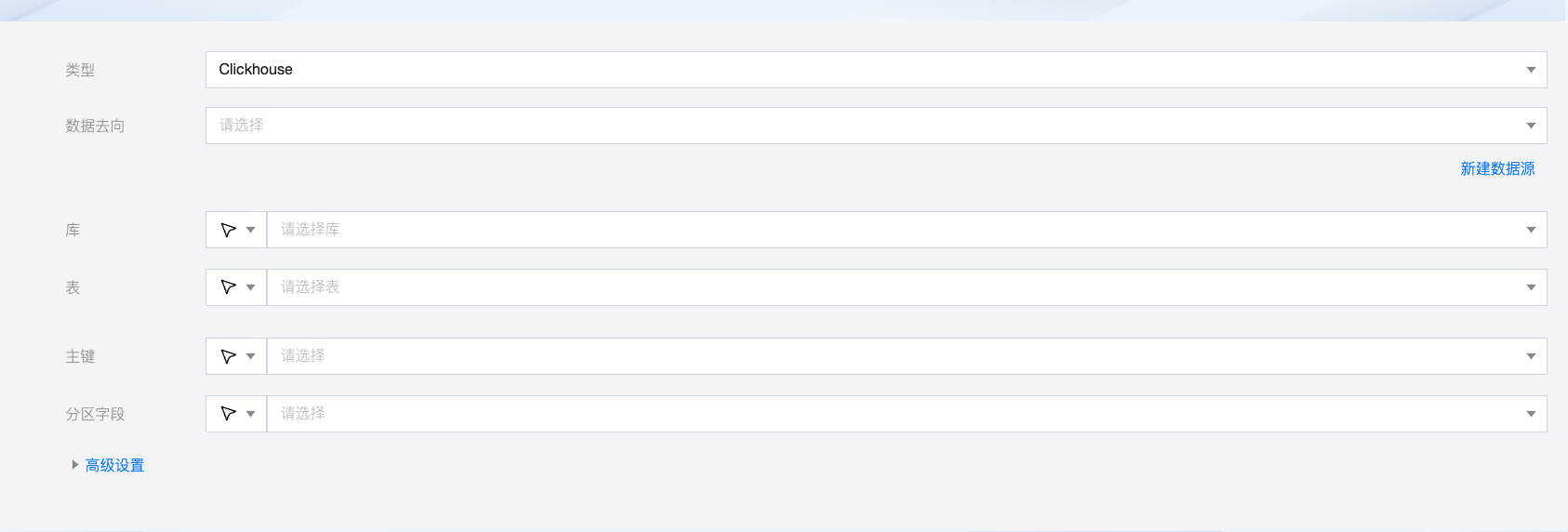 数据去向 | 选择当前项目中可用的 Clickhouse 数据源。 |