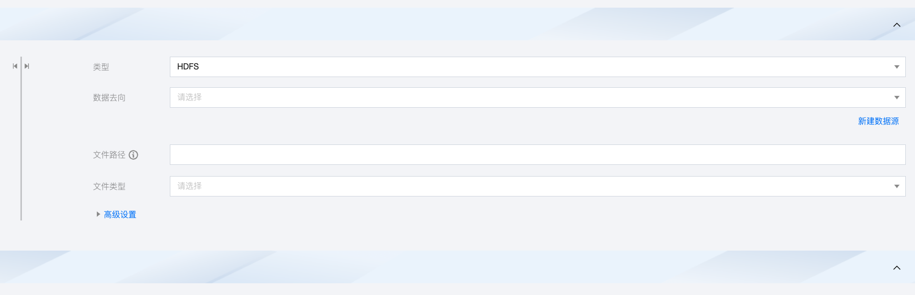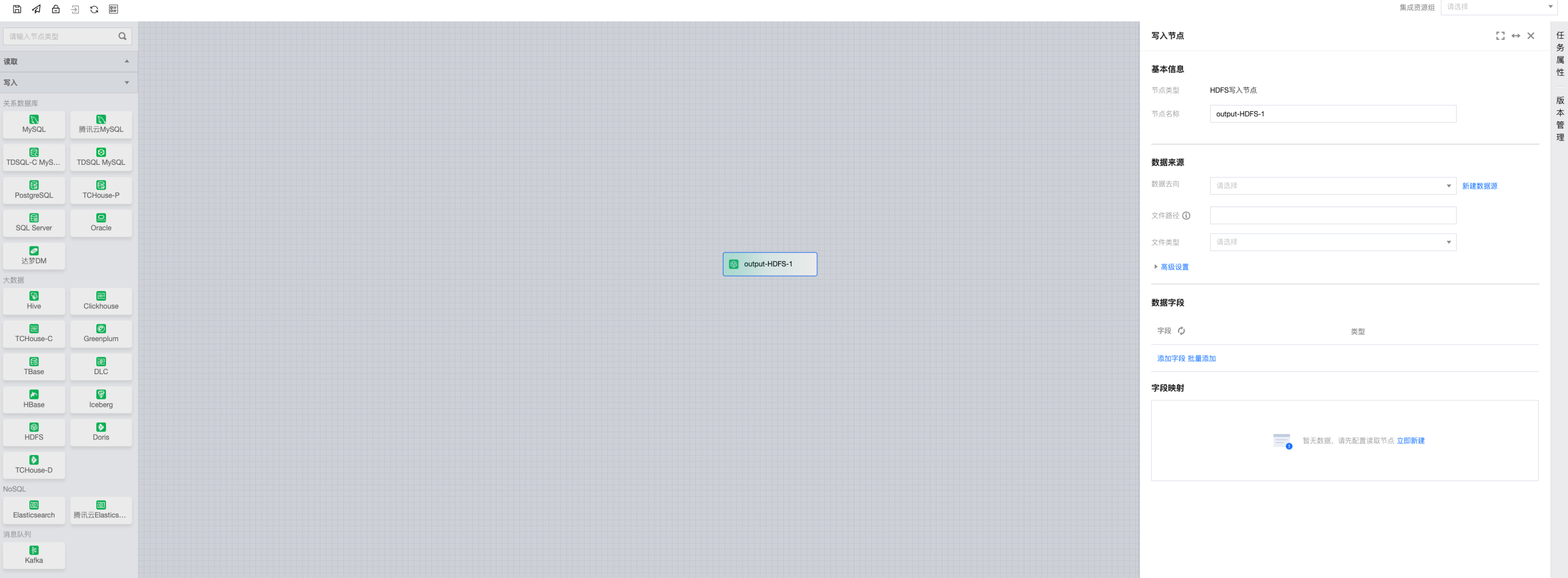 数据去向 | 选择当前项目中可用的 HDFS 数据源。 |