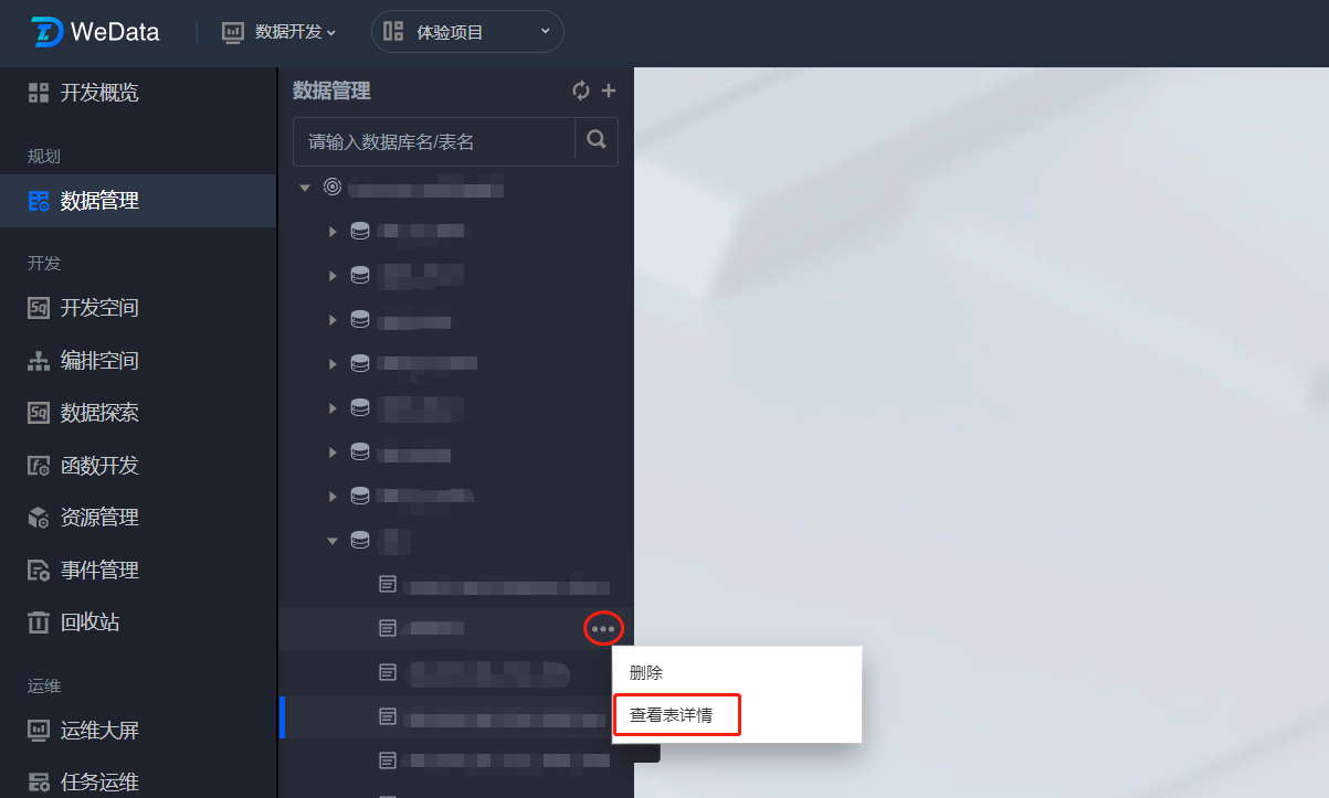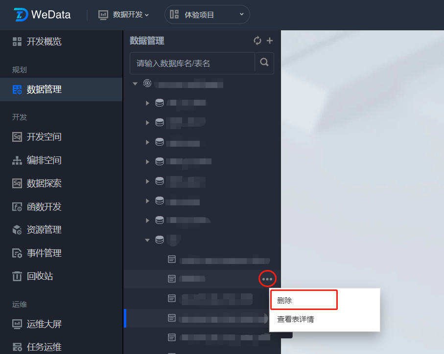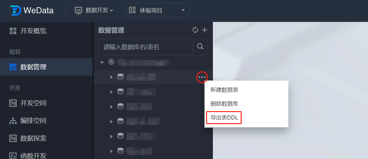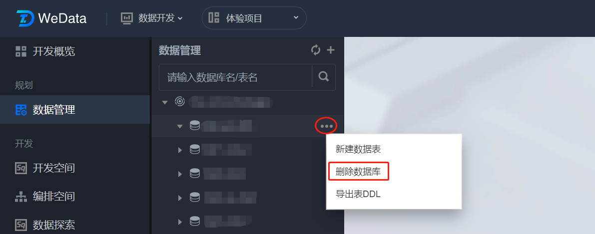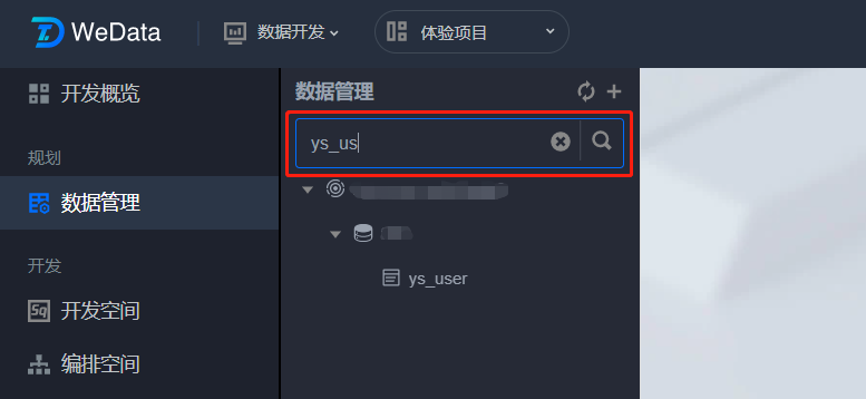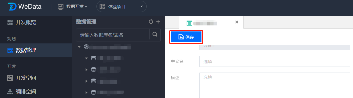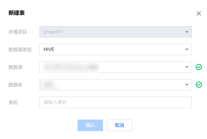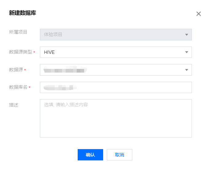 数据库 | 显示当前项目绑定的 Hive 数据库,根据数据源类型联动。支持按照库名称进行搜索。 |