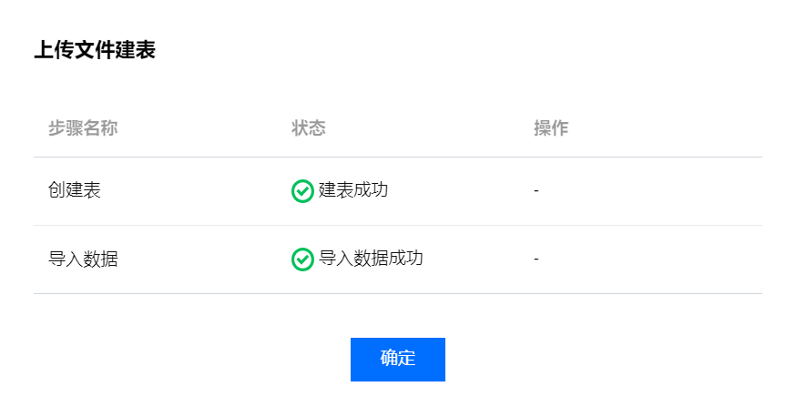 表名 | 默认自动带入去掉后缀名的上传文件名,可自定义名称。 |