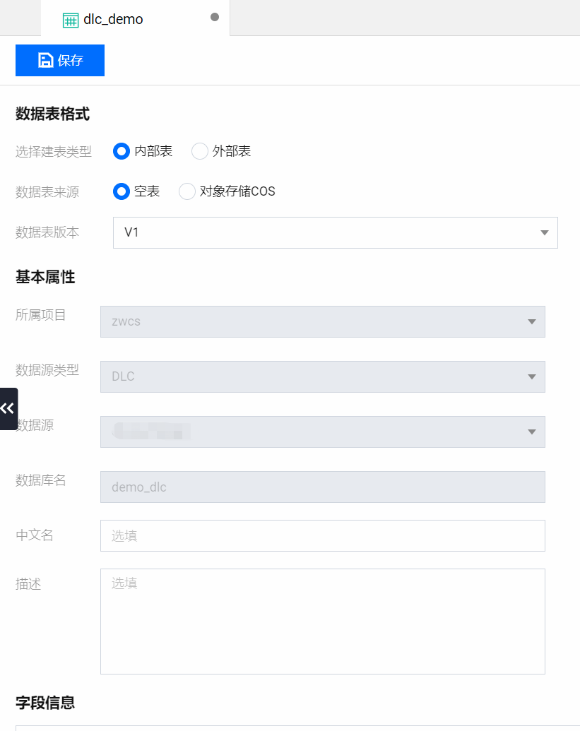 基本信息配置 | 数据源类型 | 选择 DLC 类型。 |