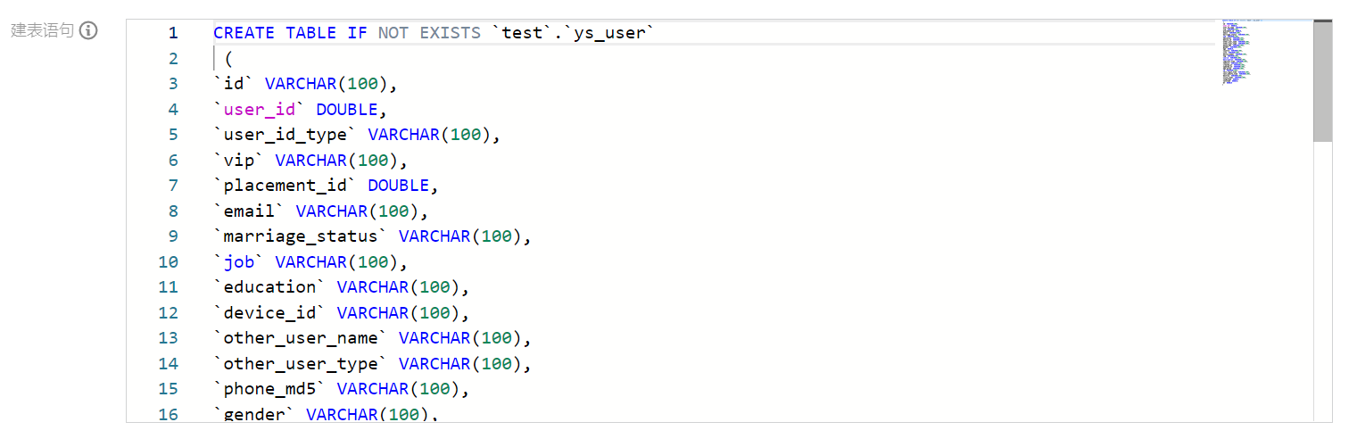![]() 注意: DDL 建表过程中,需要保证建表语句的表名部分与新建数据表时输入的名称一致。 |