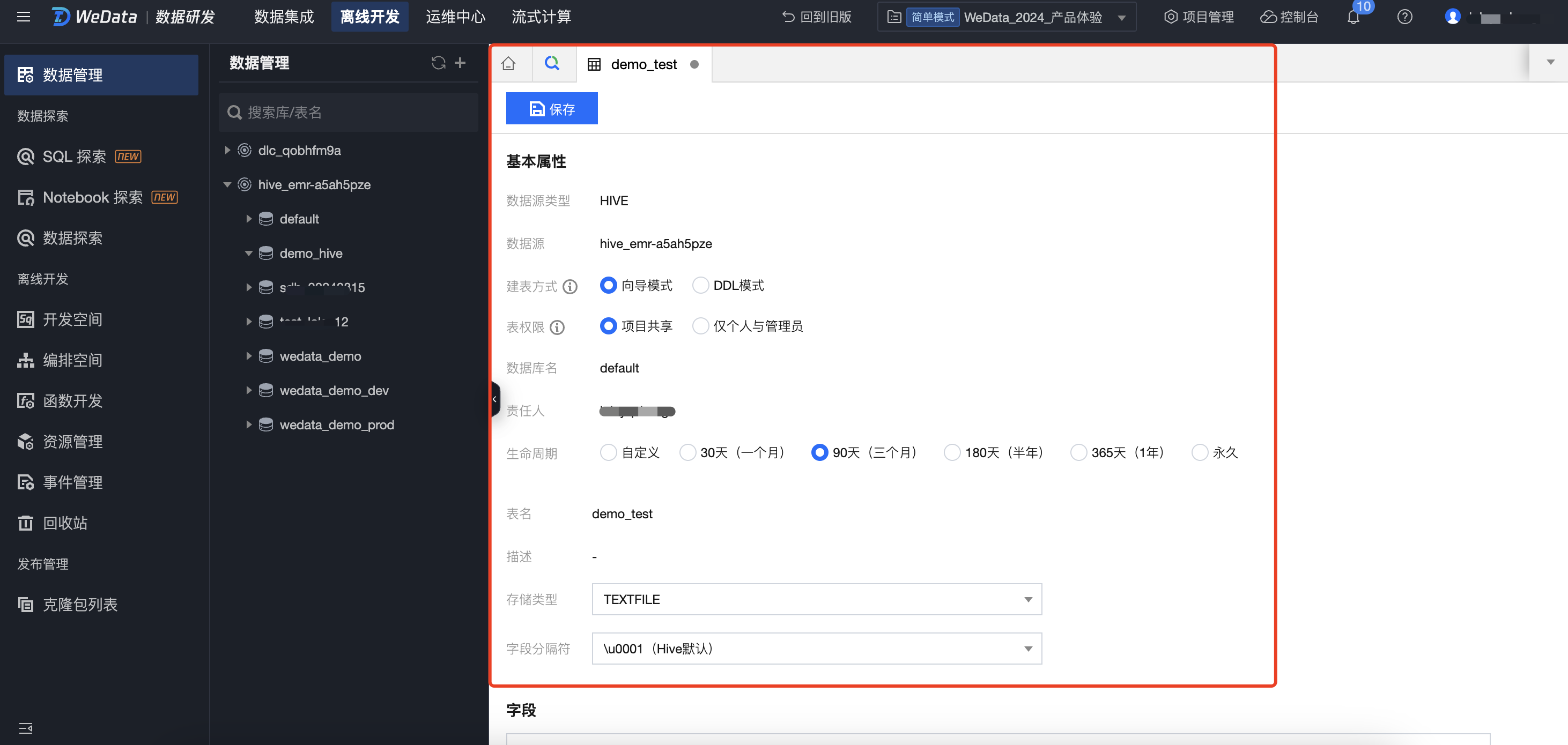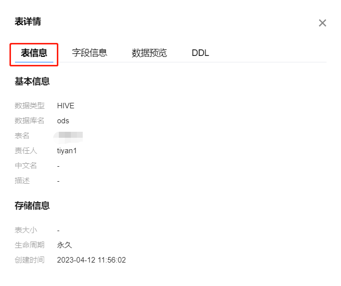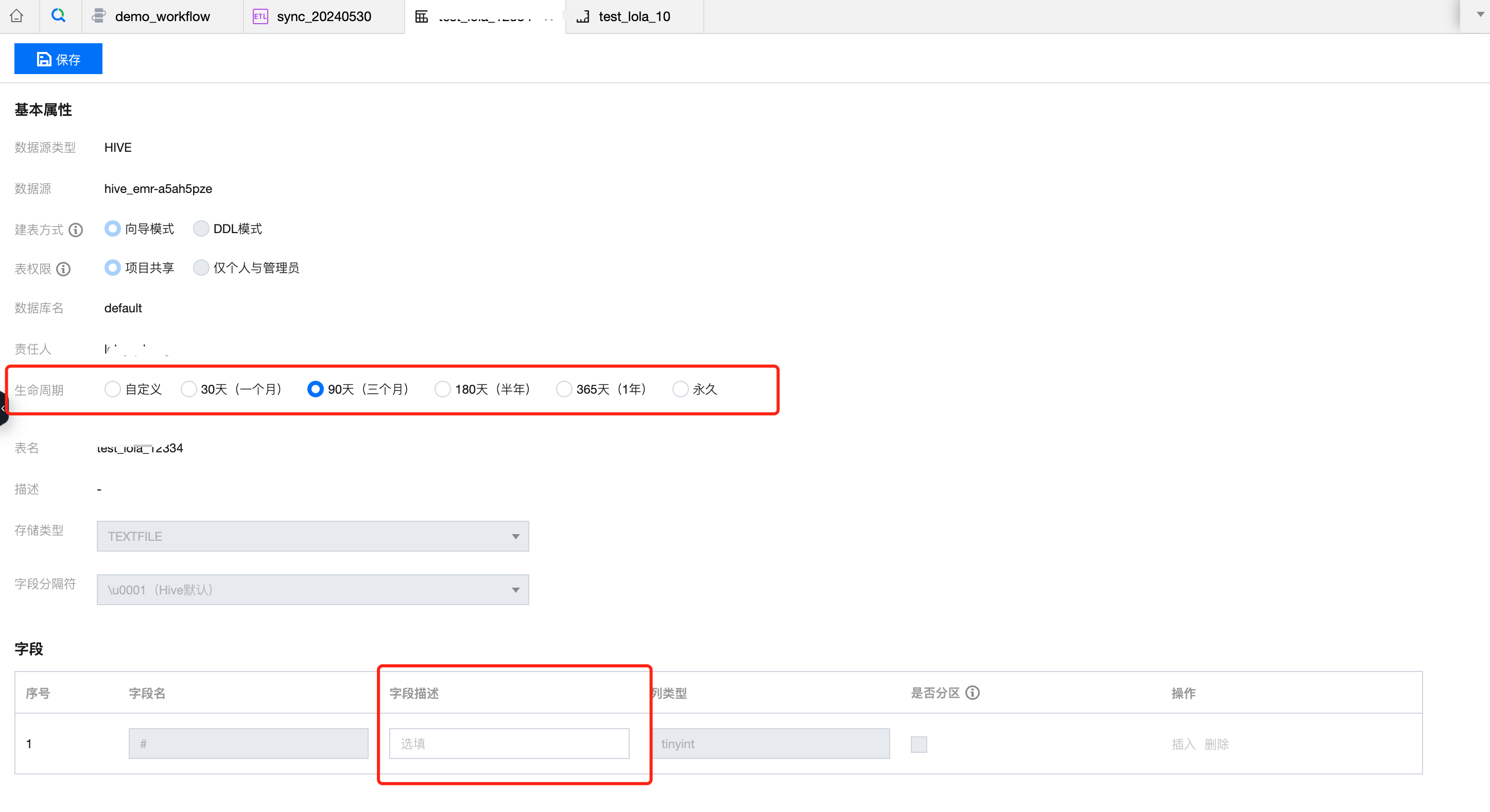| 生命周期 | 当前数据表的生命周期,用于控制其有效使用时间,提升数据治理过程中整体的安全性与节省存算资源。 |