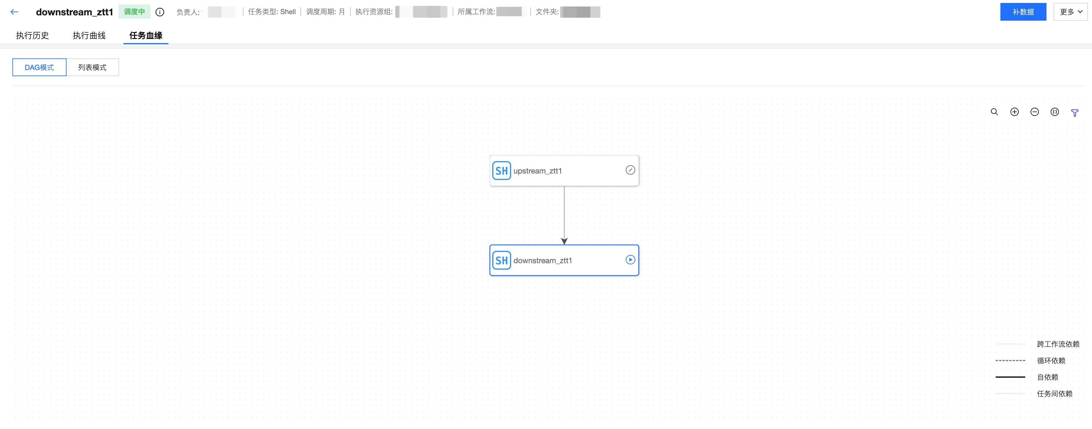 任务血缘 | 展示当前任务的血缘信息。 分为 DAG 模式和列表模式,血缘关系复杂、节点较多的场景推荐使用列表模式。 任务血缘的 DAG 图中提供了当前节点的上下游任务,支持通过状态进行筛选。可选状态包括调度中、已暂停、已下线、已失效。 ![]() |