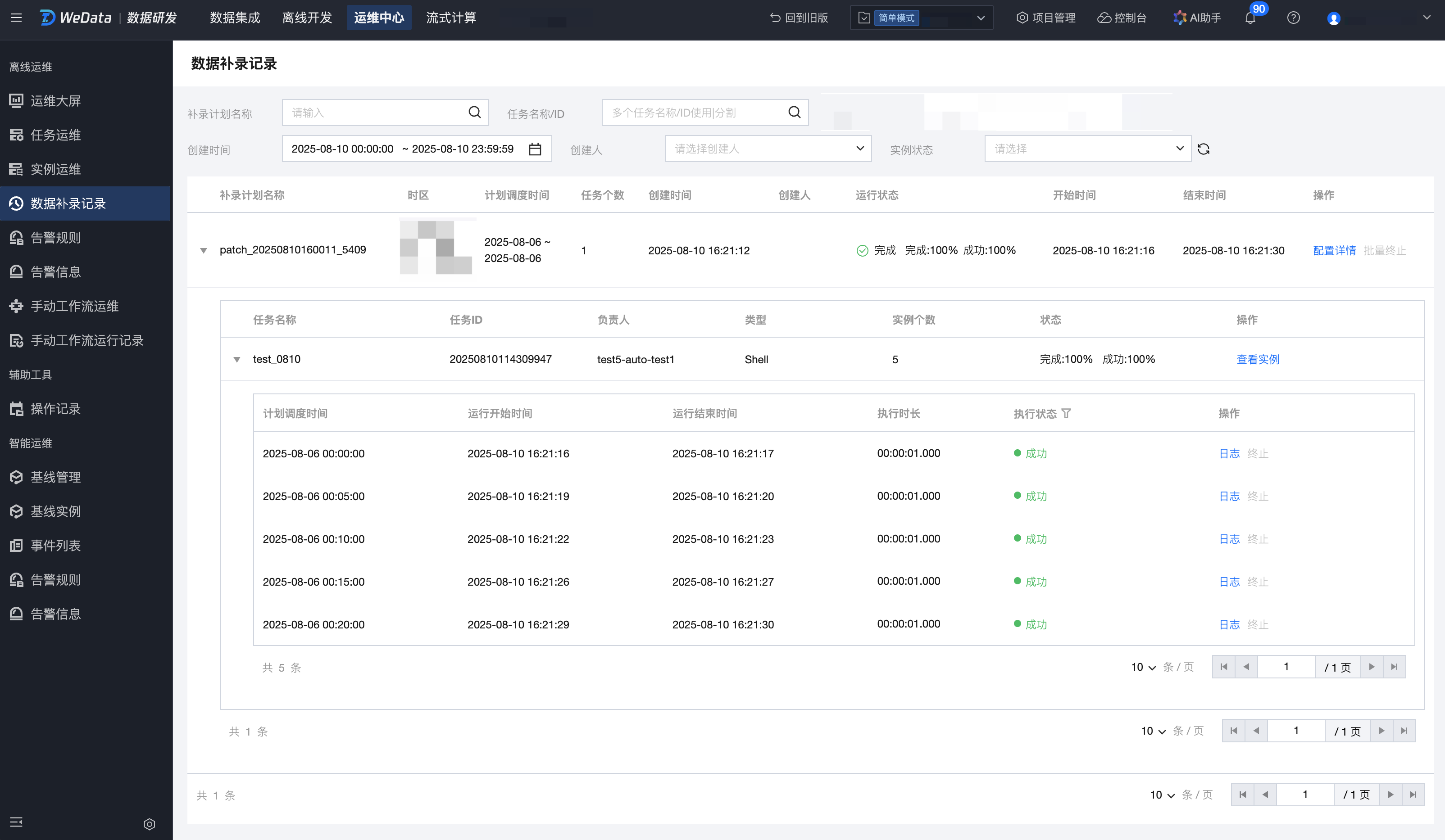 补录任务黑名单 | 选择补录类型为项目补录后可以配置,除黑名单任务外,项目下其余符合补录条件的任务参与本次补录。 |