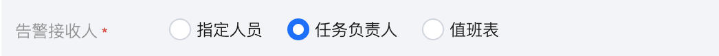 | 告警接收人 | 告警规则触发后,会向接收人发送告警信息,目前支持“指定人员”、“任务责任人”、“值班表”三种方式设置告警规则触发后的告警信息接收人。 指定人员:可以指定任意的一个或多个用户作为告警信息接收人。 任务责任人:将计算任务的责任人作为告警信息接收人。 值班表:将已排班的值班表作为接收人,向值班用户发送告警信息。值班表中的用户在告警信息中为某条告警信息单击确认告警后,同一值班表下的用户将不再接收此条告警的消息。 ![]() |