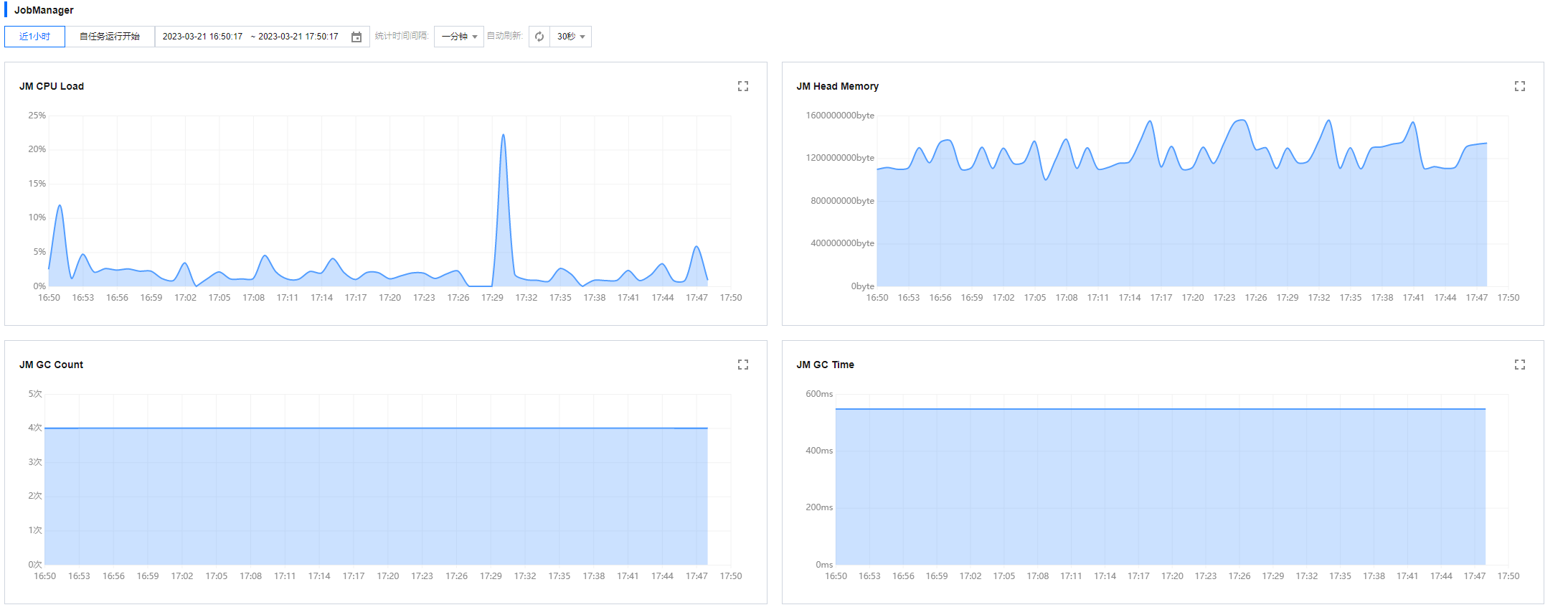 JM Head Memory | TaskManager 维度的堆内存使用情况。 | 1次 |