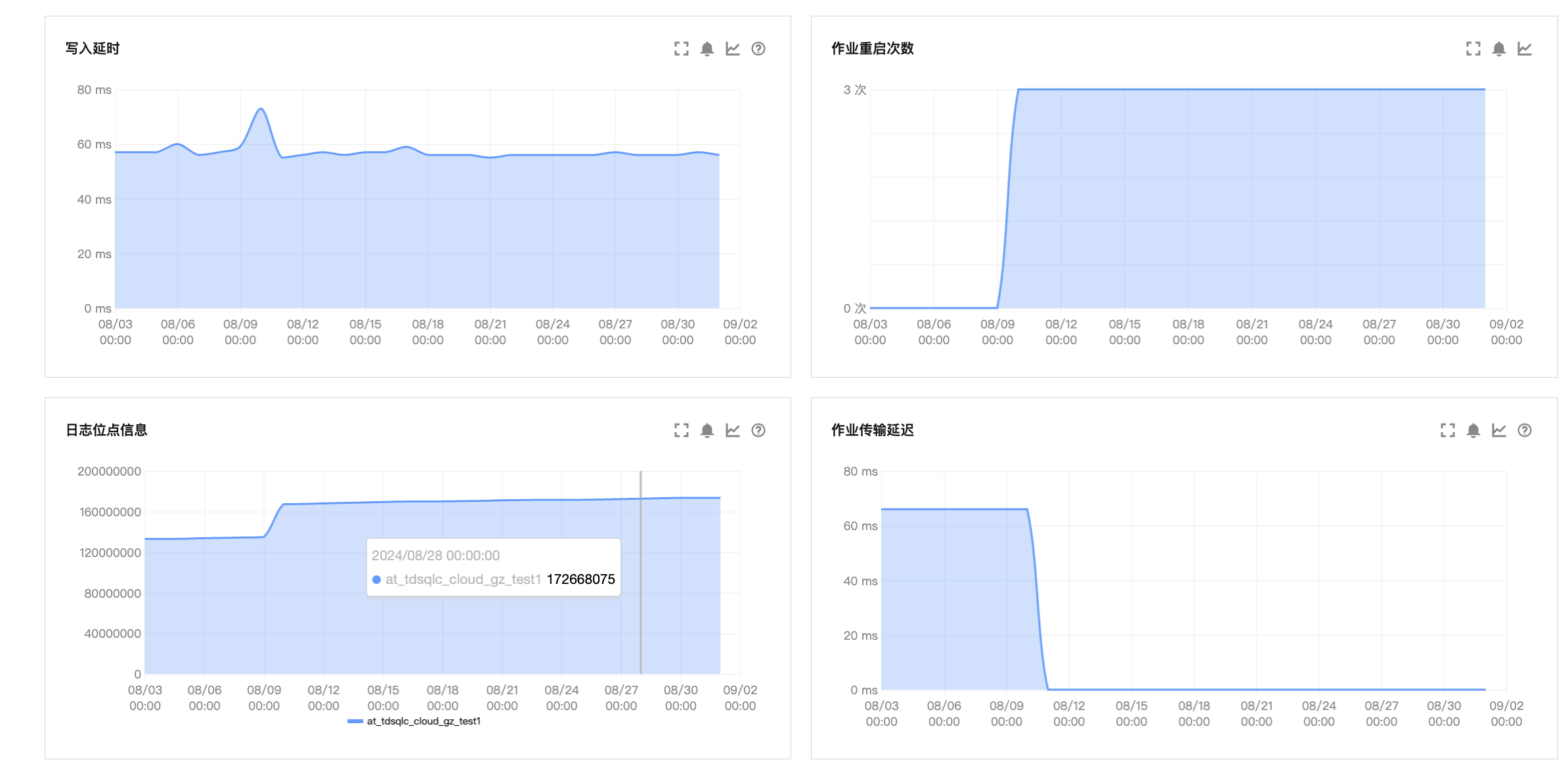 写入延时 | 来源 Source 端至写入 Sink 端之间的链路延迟,写入延时 = 系统时间 - 记录读取时间(读取端 LatencyMarker 时间戳) |