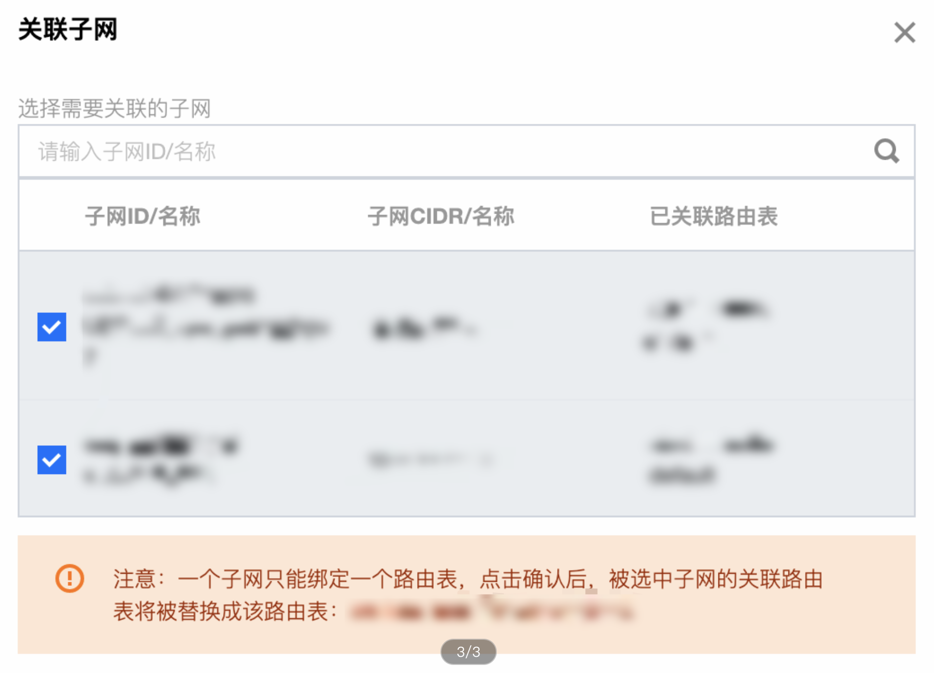 6. 选择需要关联的子网并绑定: