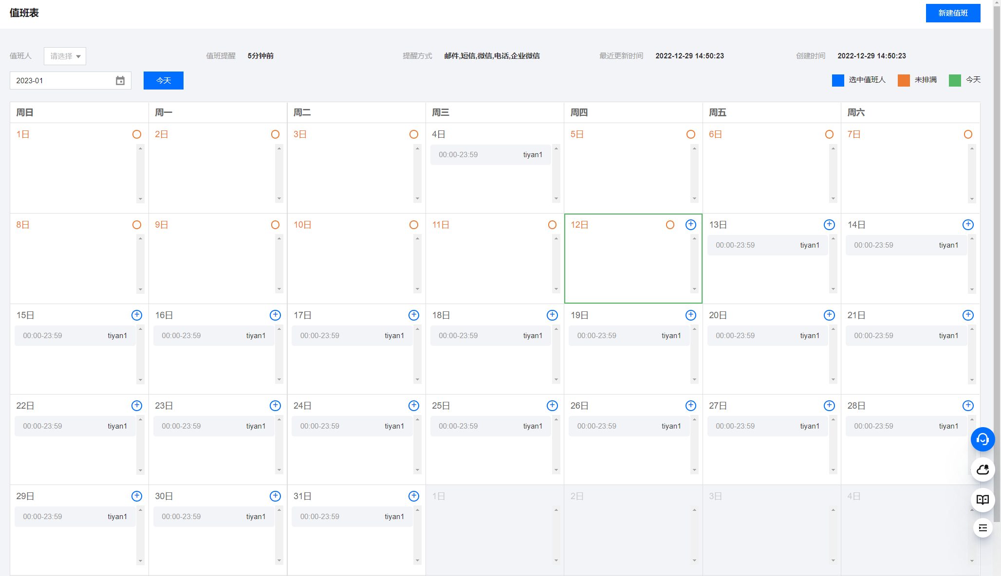 周期性值班 | 可选择每天、每周、每工作日、每周末、每月或自定义的值班周期 |