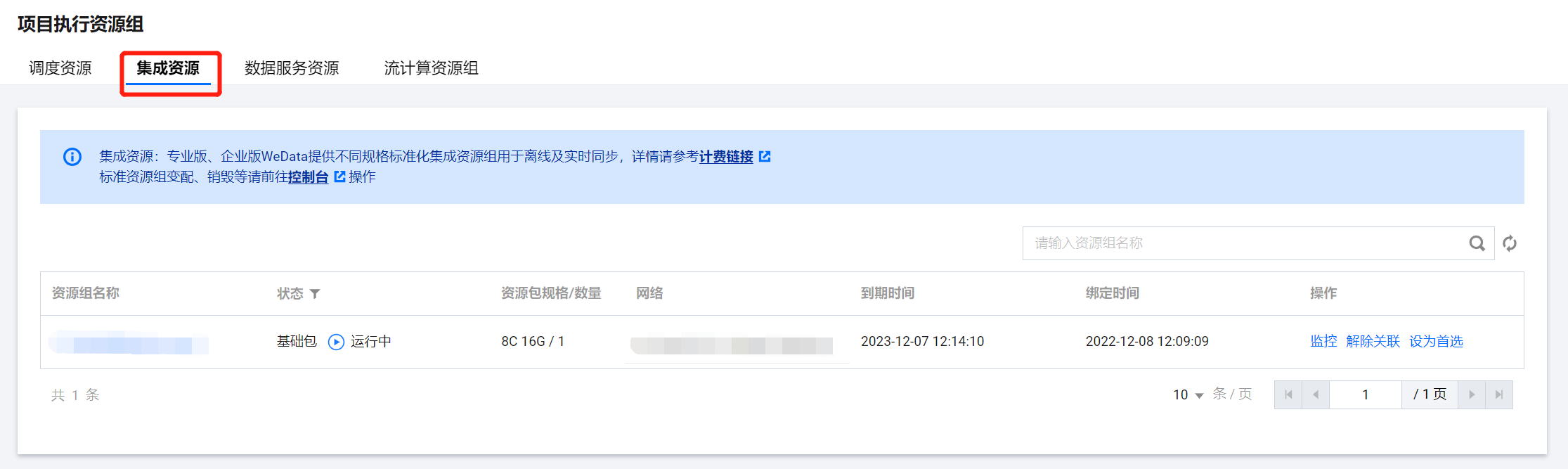 专业版、企业版 WeData 提供不同规格标准化集成资源组用于离线及实时同步。标准资源组变配、销毁等请前往