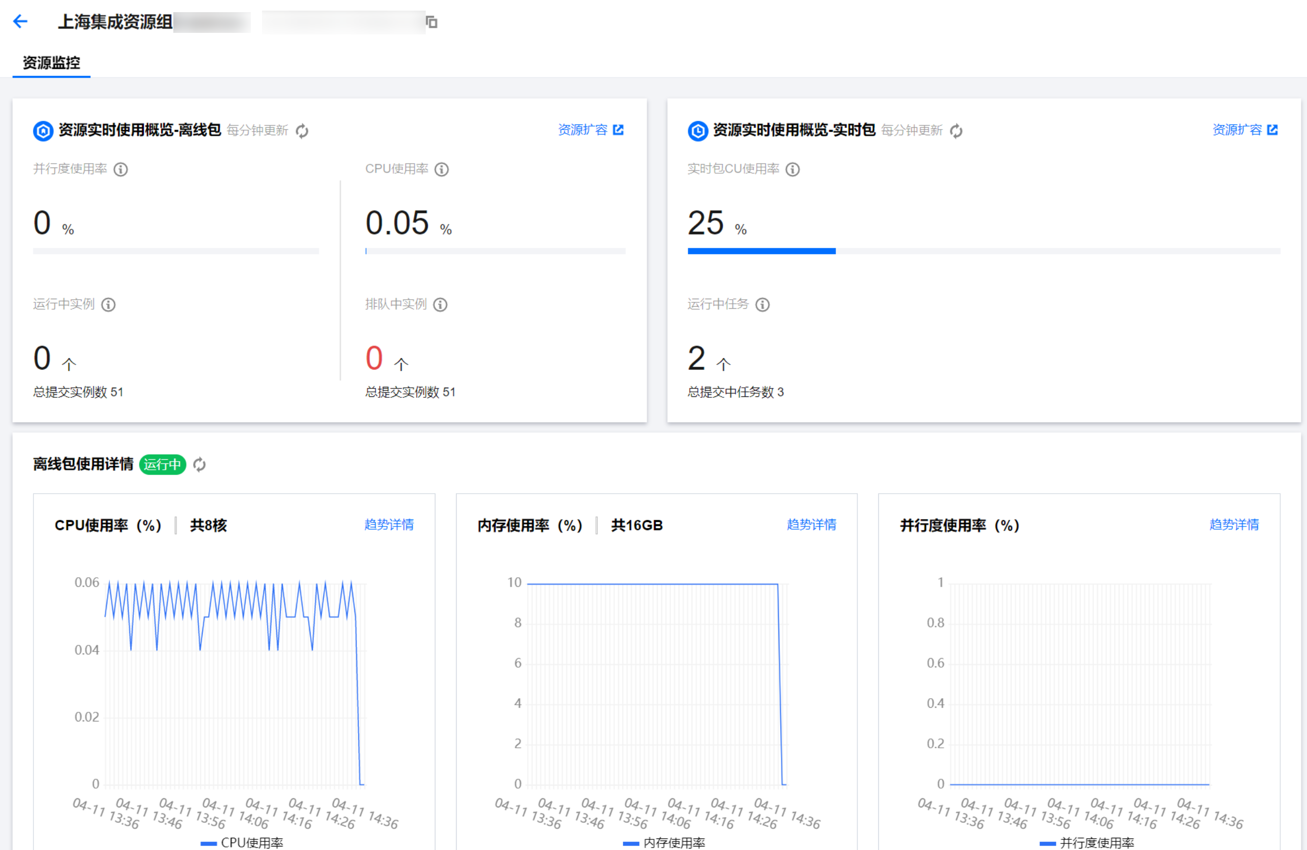 ,可以动态监控对应资源组的使用情况。当资源使用趋于饱和时通过资源扩容可以调配资源。