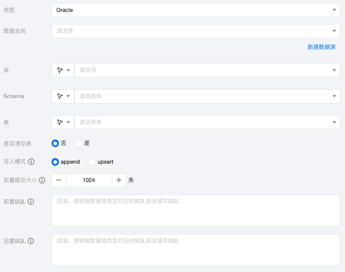 Schema | 支持选择、或者手动输入需要写入的 Oracle 数据模式。 |