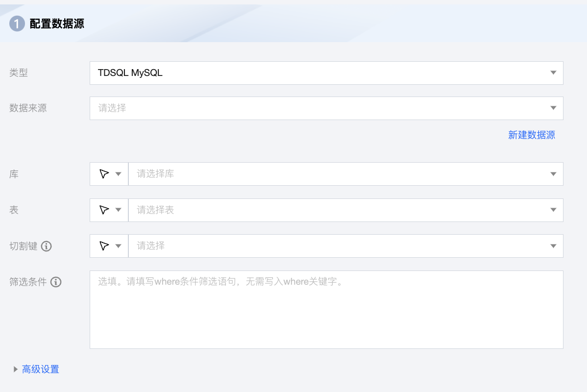 数据来源 | 可用的 TDSQL Mysql 数据源。 |
