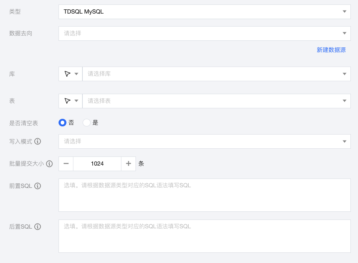 数据去向 | 需要写入的 TDSQL Mysql 数据源。 |