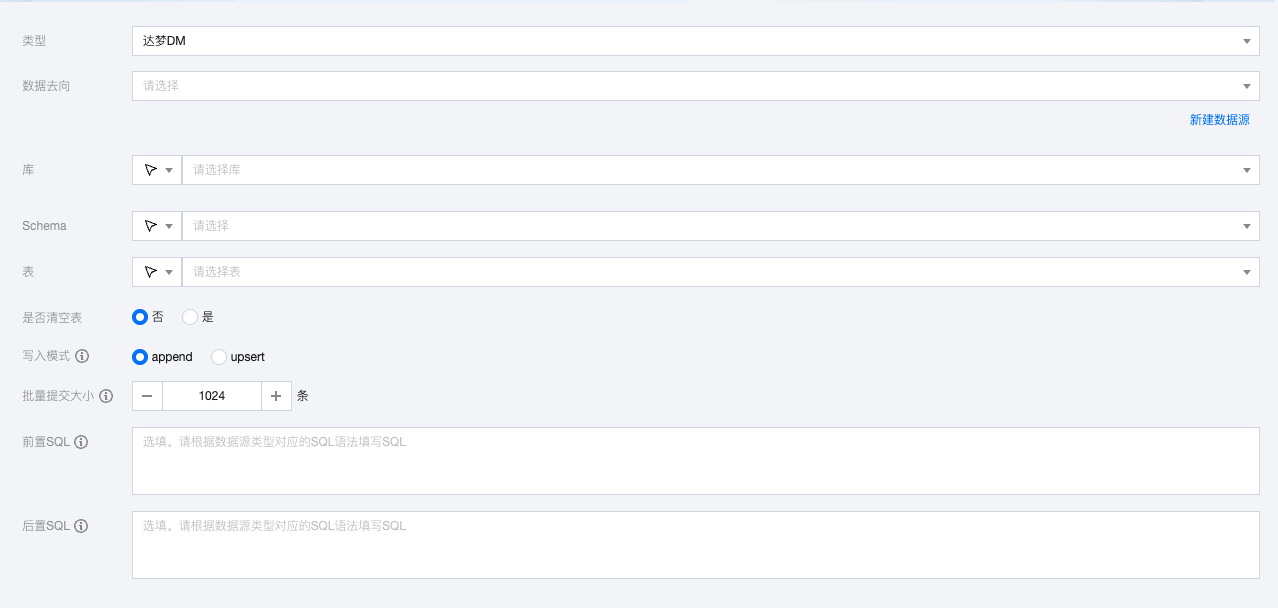 数据去向 | 需要写入的 DM 数据源。 |