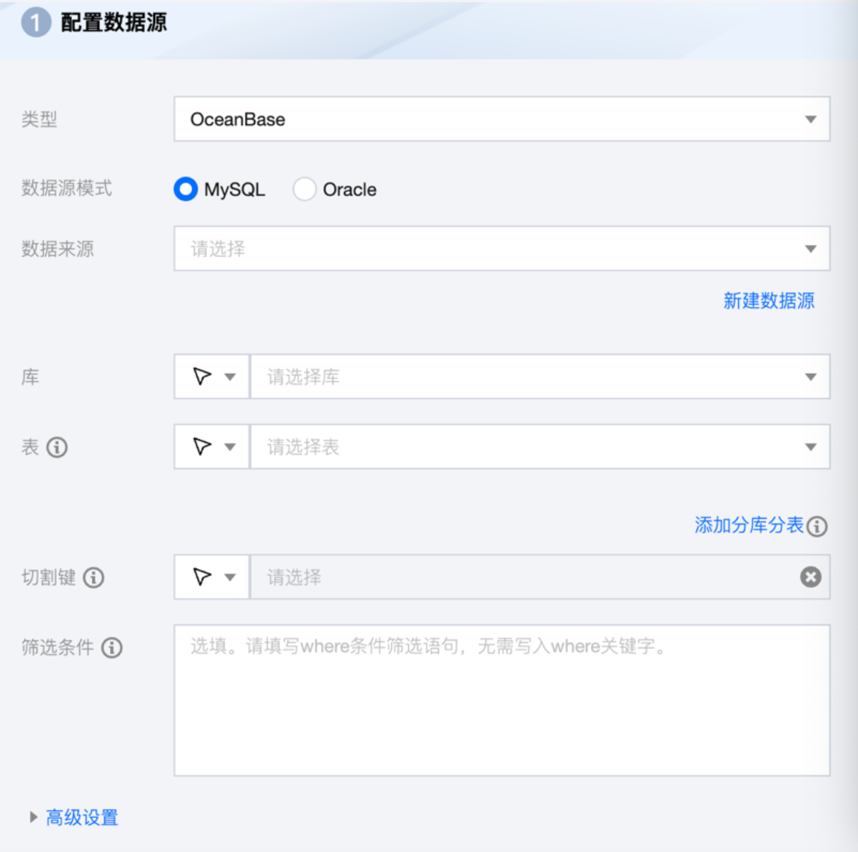 添加分库分表 | 适用于分库场景,单击后可配置多个数据源、库及表信息。分库分表场景下需保证所有表结构一致,任务配置将默认展示并使用第一个表结构进行数据获取。 |