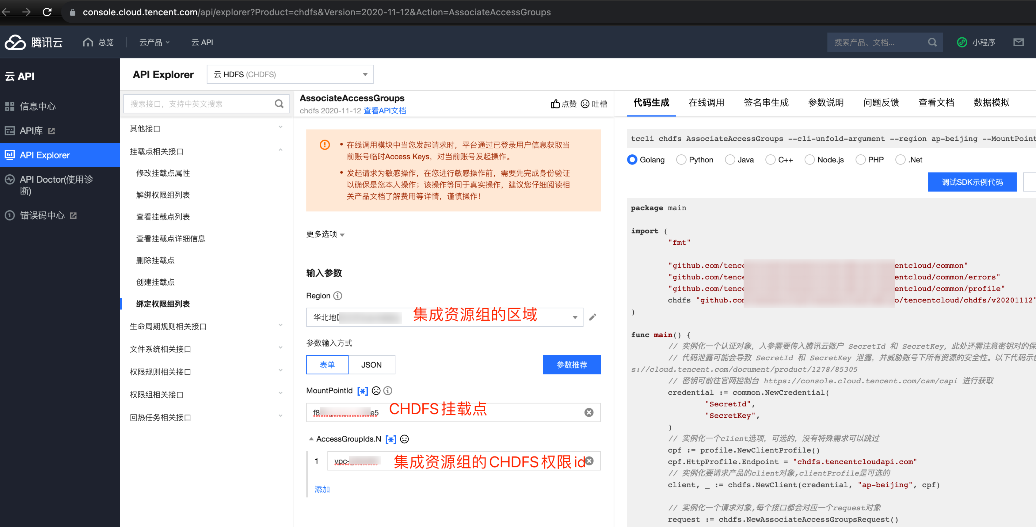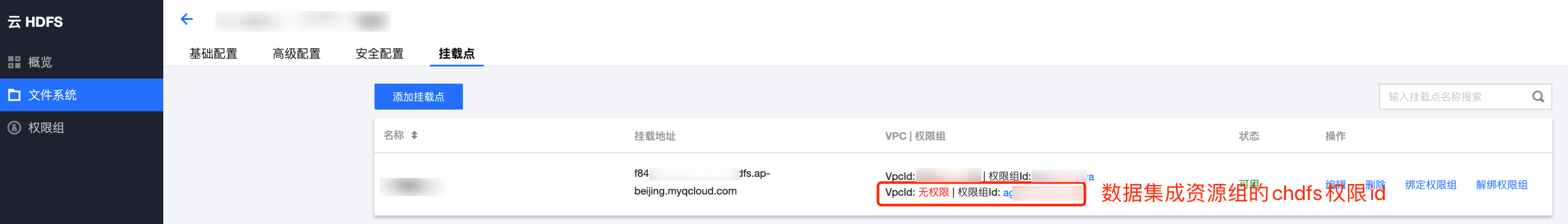 区域 | 数据集成资源组 CHDFS 权限 id |