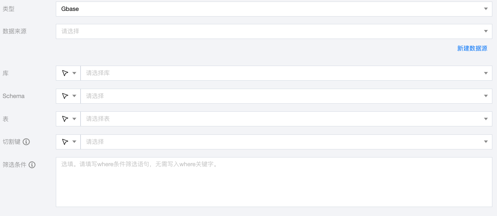 Gbase 根据指定的 where 条件拼接 SQL,并根据该 SQL 进行数据抽取。例如,在测试时,可以将 where 条件指定为 limit 10。在实际业务场景中,通常会选择当天的数据进行同步,将 where 条件指定为 gmt_create > $bizdate。 where 条件可以有效地进行业务增量同步。 where 条件为空,视作同步全表所有的信息。 |