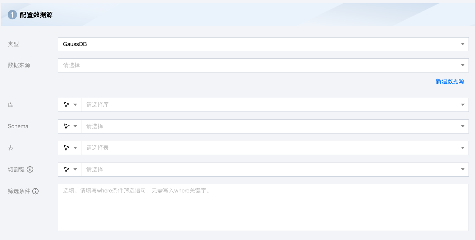 数据来源 | 可用的 GaussDB 数据源。 |