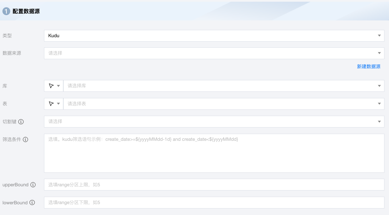 数据来源 | 可用的 Kudu 数据源。 |