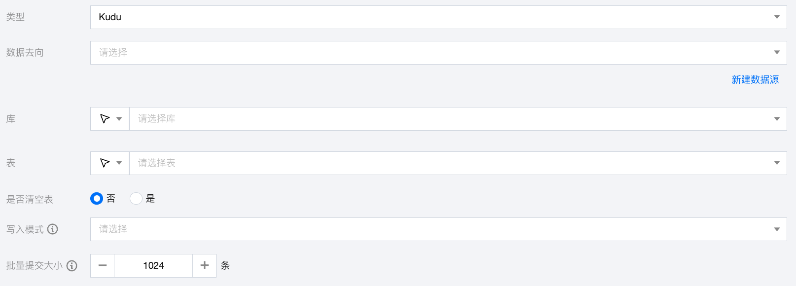 数据去向 | 需要写入的 Kudu 数据源。 |