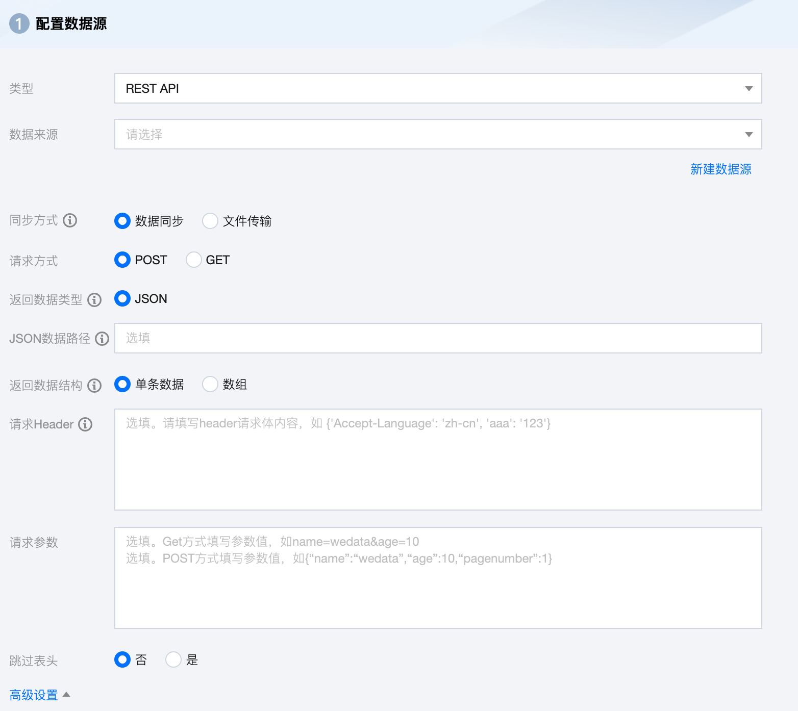 跳过表头 | 否:同步时,不跳过表头。 是:同步时,跳过表头。 说明: 仅同步方式为数据同步时支持是否跳过表头。 |