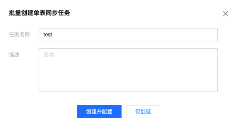 仅保存 | | 生成批量创建任务本身,但不开始创建单表同步任务。 |