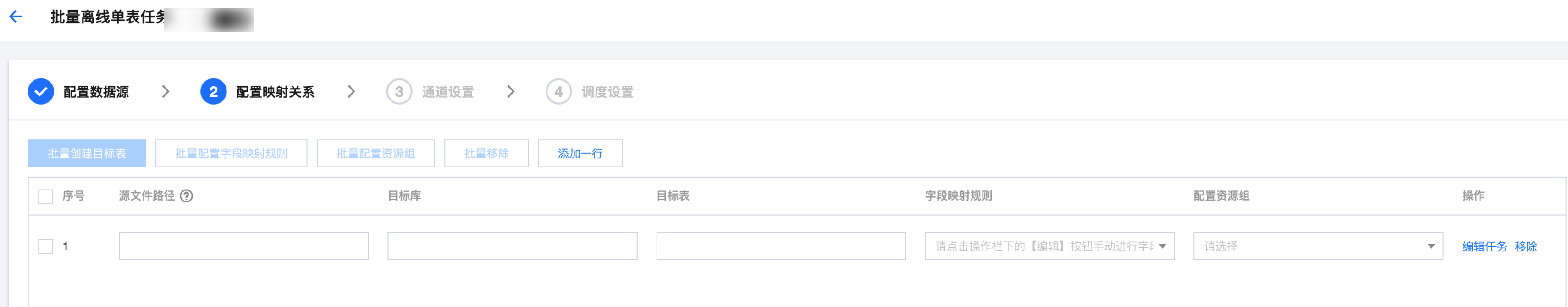 操作 | 编辑任务 | 支持详细进行个性化配置,如配置数据源、字段映射规则等。 |