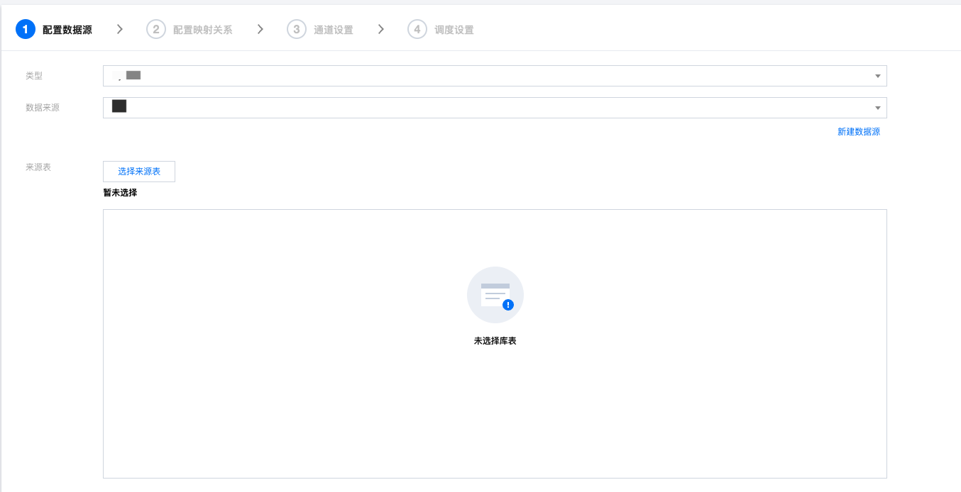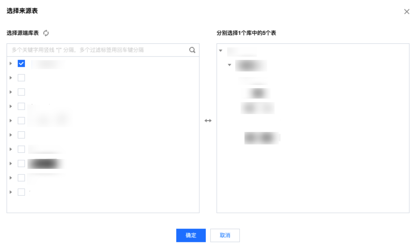 来源表 | 选择来源库、表 ![]() 注意: 来源表的单次批量任务支持的最大数量为500张表 |