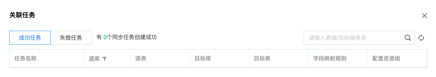 成功任务数 | | 展示已成功创建的单表任务数(60秒刷新一次),点击后可查看具体的任务详情。 ![]() |