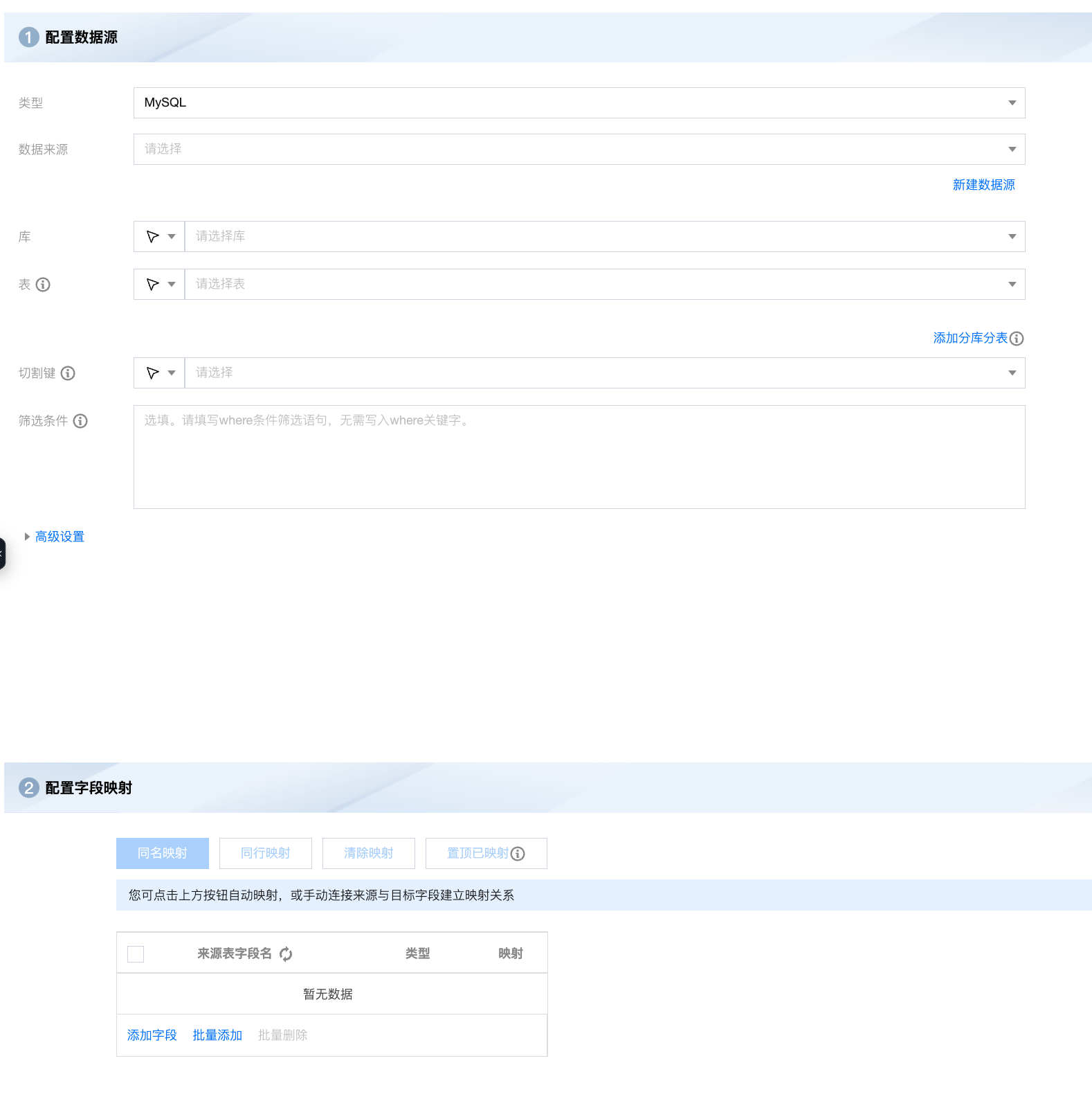 置顶已映射 | | 置顶并格式化显示已建立映射关系字段;此格式化不影响表实际存储字段顺序,仅用于前端优化展示。 |