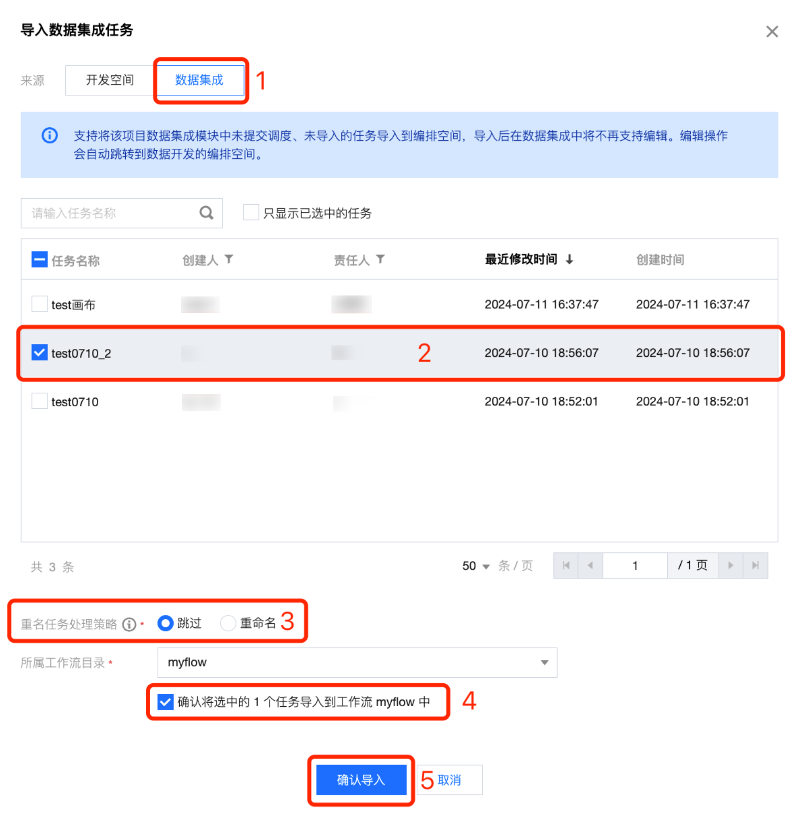 跳过:如果项目中有跟开发空间重名的任务,则跳过该脚本的导入。