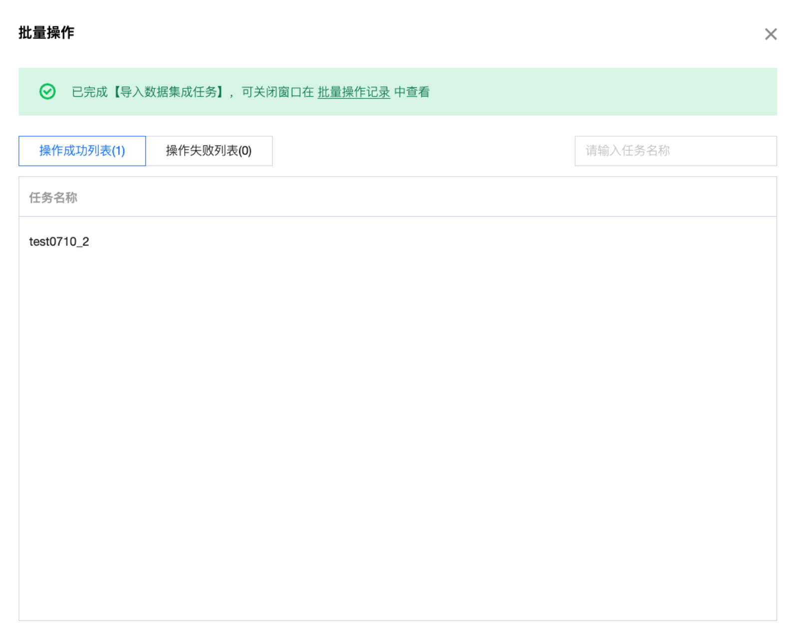 1. 您可在批量操作页面中确认离线同步任务导入结果。