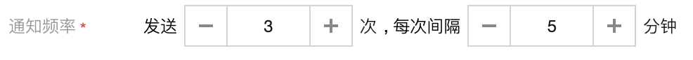 | 通知频率 | 支持定义一次告警的发送次数,及每次发送消息之间的间隔时间。 ![]() |