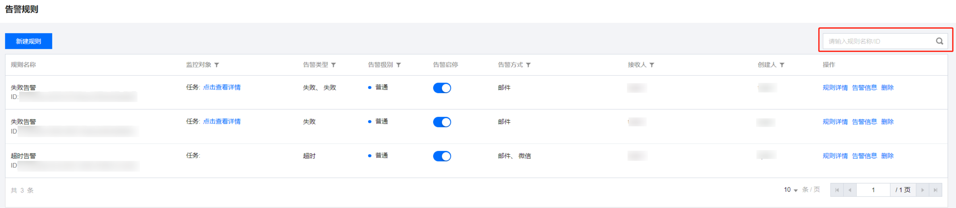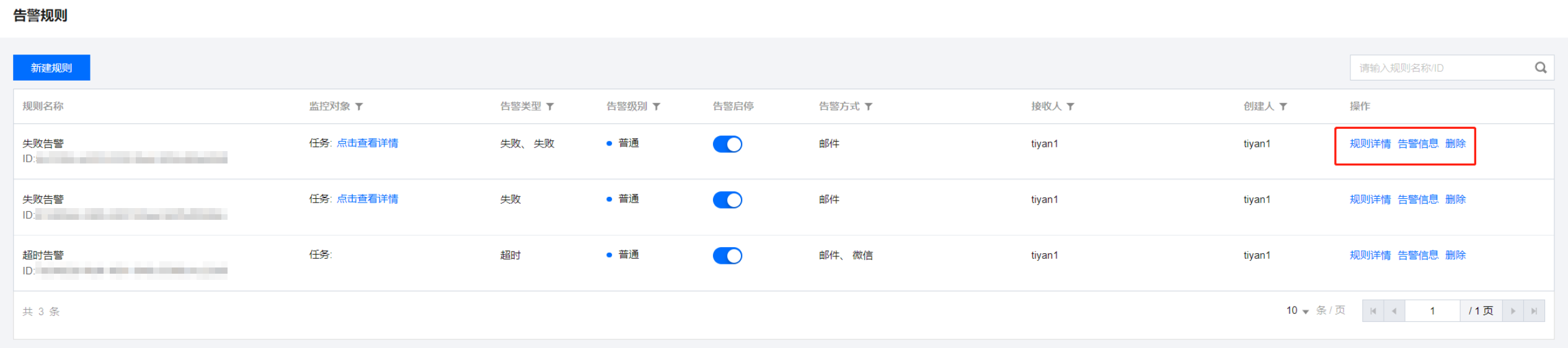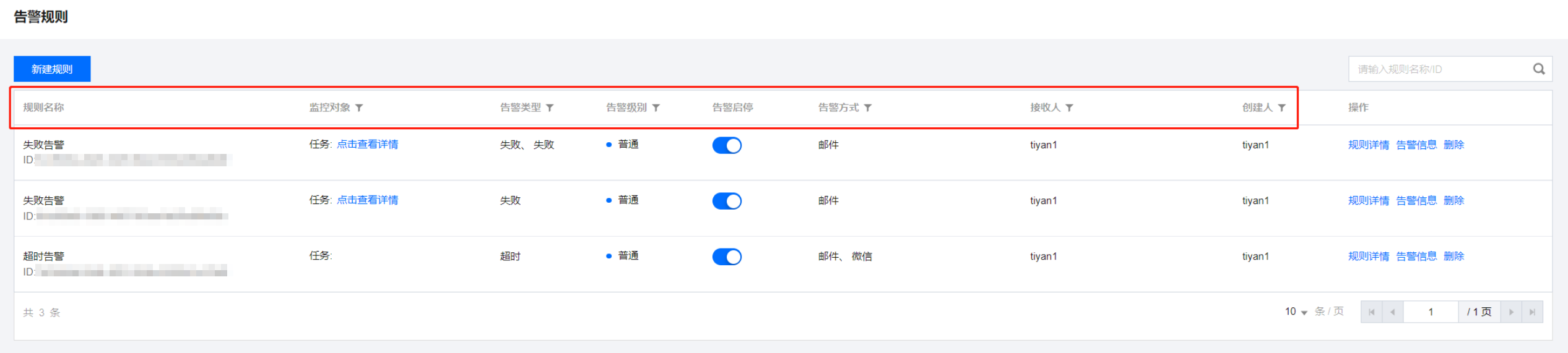 规则名称 | 显示告警规则名称与 ID 号。 |