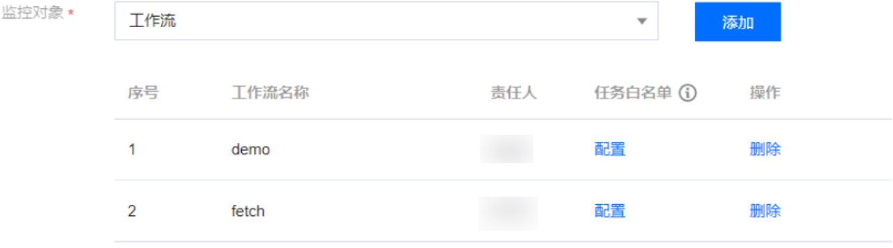 | 监控对象 | 选择需要进行规则告警的监控对象,目前支持为计算任务、工作流、项目配置告警规则。 任务告警:可以选择编排空间中,已提交运维的所有计算任务节点进行告警规则配置。 ![]() 工作流告警:可以为编排空间中已提交运维的工作流配置告警规则,规则的监控对象为工作流中的所有计算任务。提供白名单能力,工作流中的计算任务添加进入白名单后,白名单任务将不受告警规则监控。 ![]() 项目告警:可以将当前项目中,编排空间已提交运维的所有计算任务设置告警规则,提供白名单能力,计算任务添加进入白名单后,白名单任务将不受告警规则监控。 ![]() |