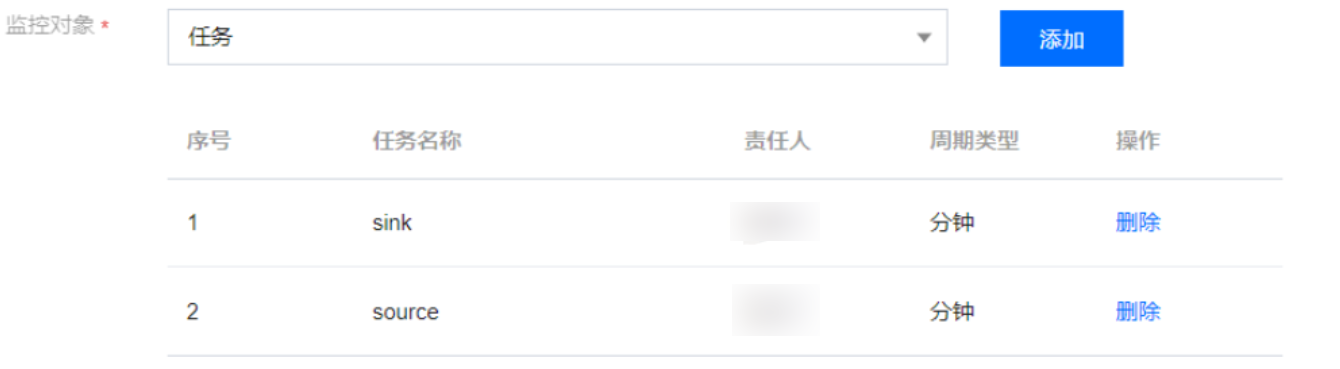 | 接收人 | 告警规则触发后,会向接收人发送告警信息,目前支持“指定人员”、“任务责任人”、“值班表”三种方式设置告警规则触发后的告警信息接收人。 指定人员:可以指定任意的一个或多个用户作为告警信息接收人。 任务责任人:将计算任务的责任人作为告警信息接收人。 值班表:将已排班的值班表作为接收人,向值班用户发送告警信息。 ![]() |