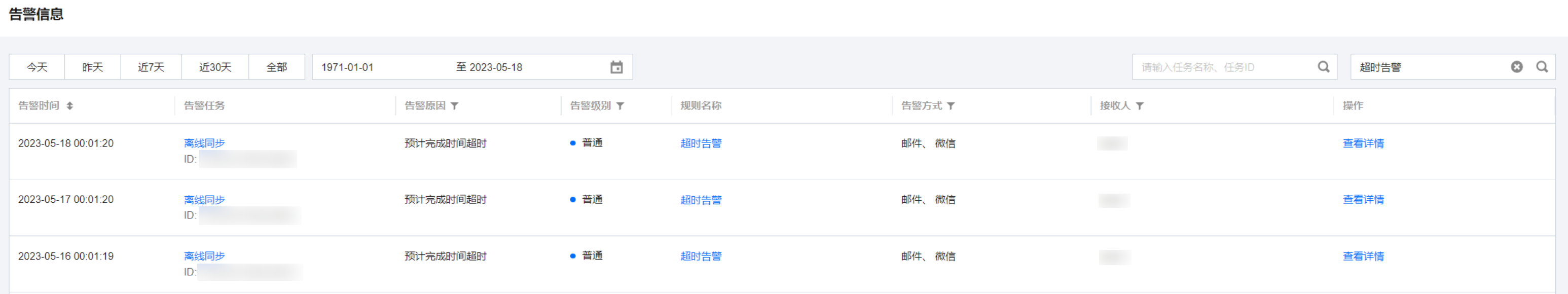 告警任务 | 显示触发告警信息的任务实例名称与实例 ID。单击实例名称可以跳转到对应实例的管理页面。 ![]() |