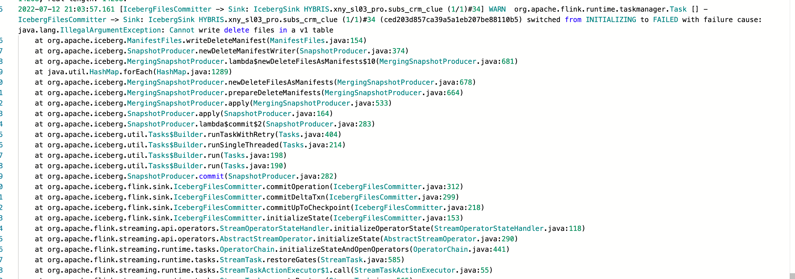 1. 同步增量数据( changlog 数据)到 dlc 时报错